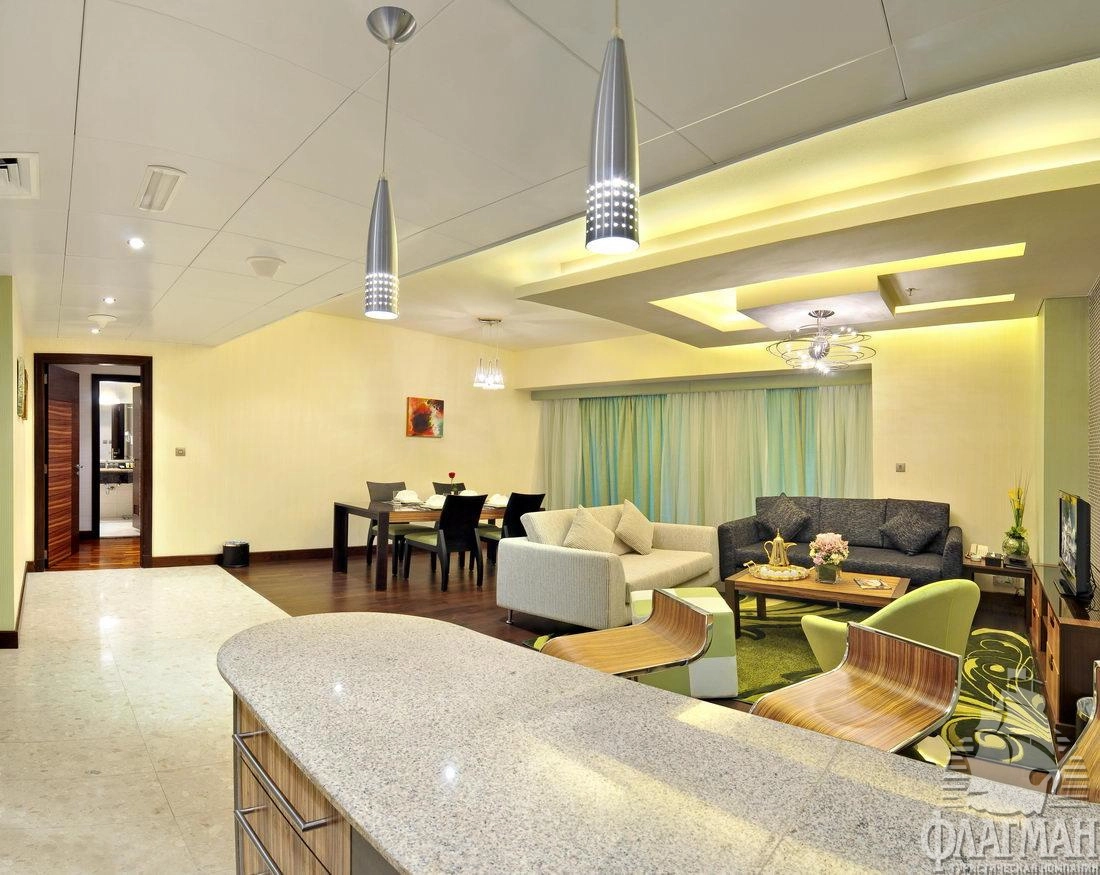 - 48 двухкомнатных Premiere 1 Bedroom Apartment (78–102 м2, все номера данной категории c балконами, расположены с 15 по 20 этаж, гостиная, кухня, спальня с межкомнатной дверью, king-size bed или twin bed, ванная комната и гостевой туалет, макс. 3 или 2+2 чел.),