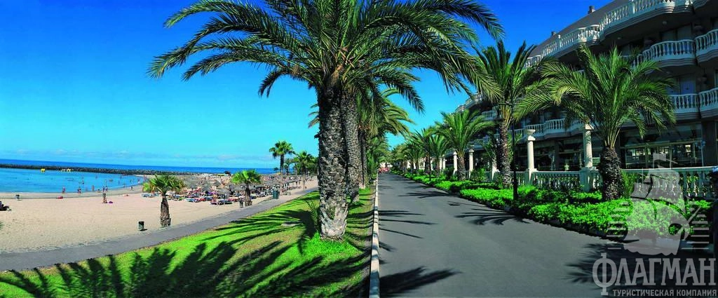 В 17 км от южного аэропорта Тенерифе, в курортной зоне Плайя-де-лас-Америкас, на первой линии.