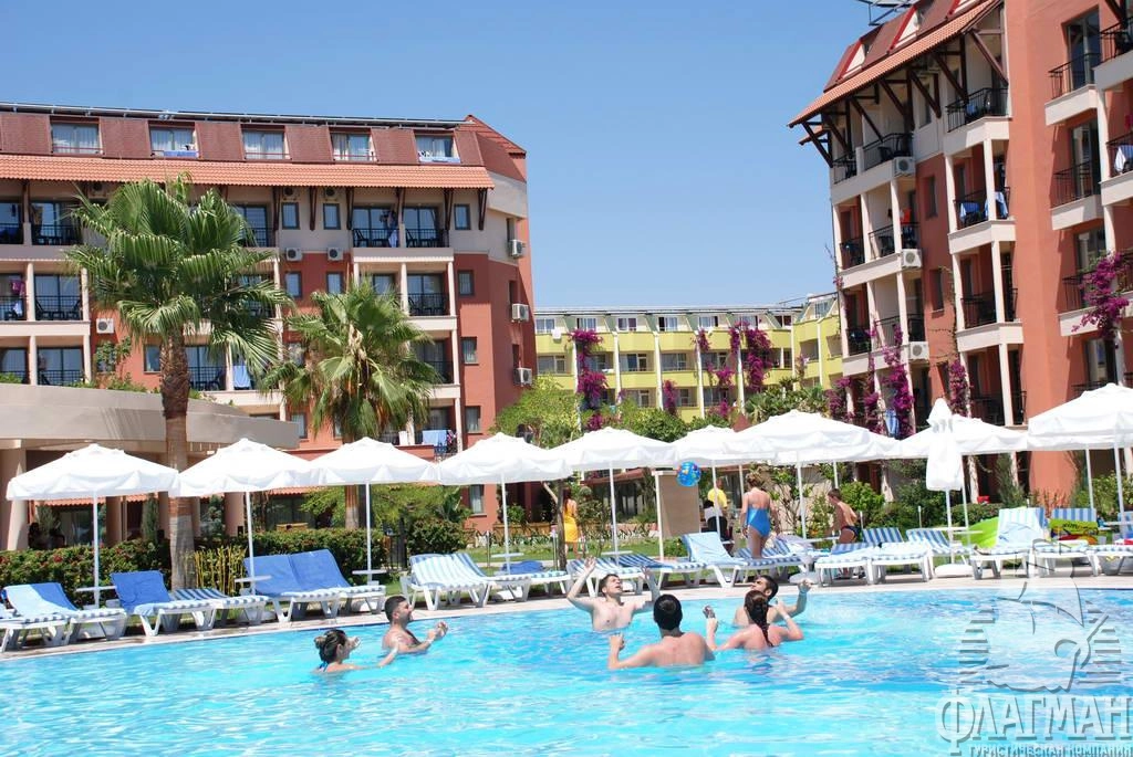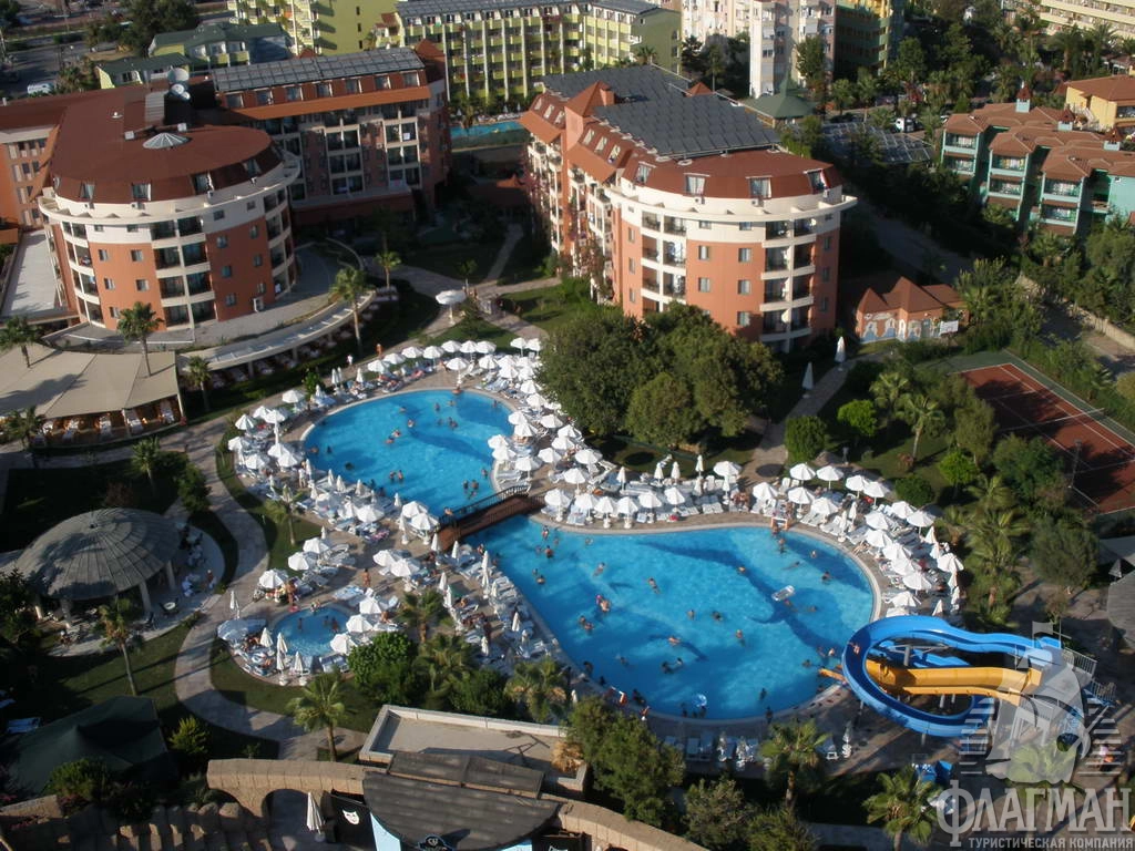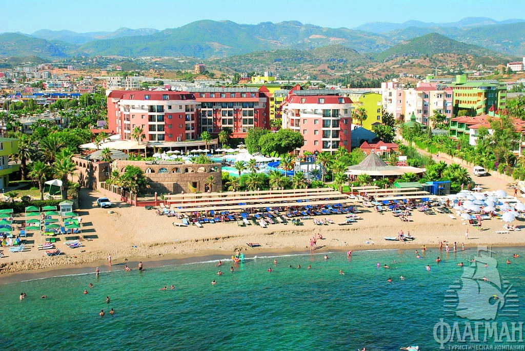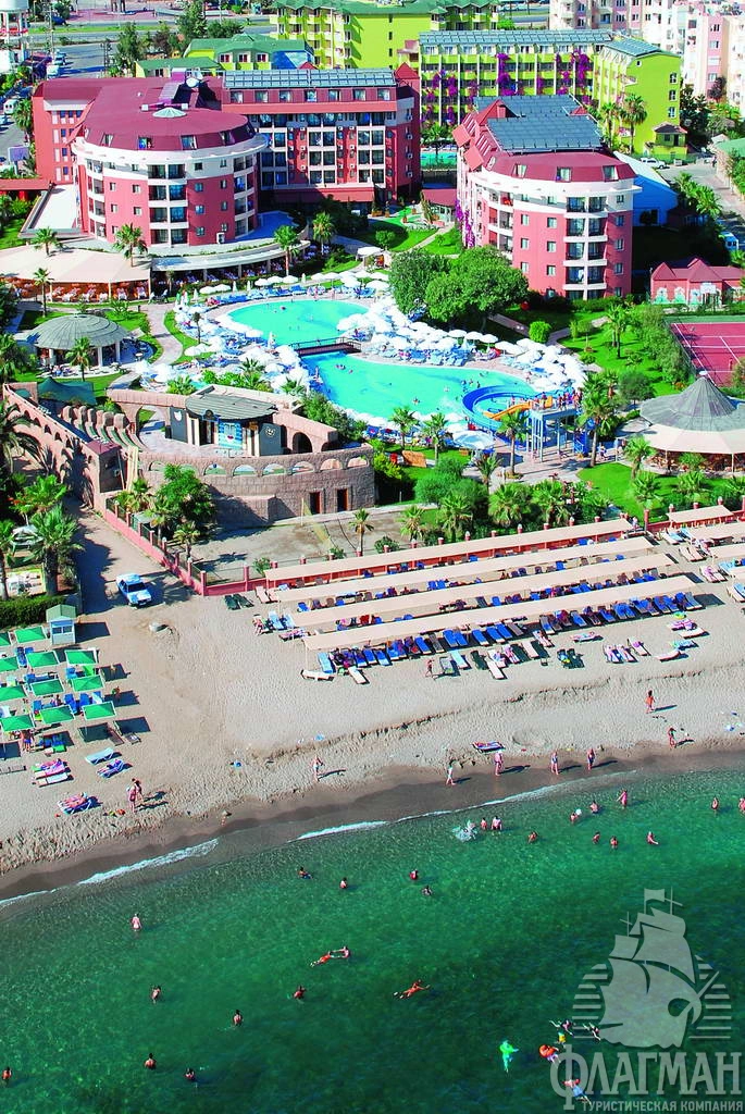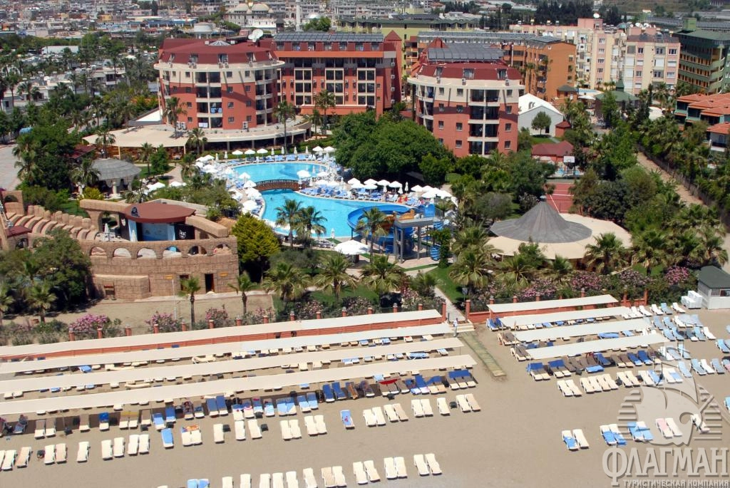 расположен в 110 км от аэропорта г. Анталья, в 13 км от г. Аланья, в 200 м от поселка Конаклы, на берегу моря.