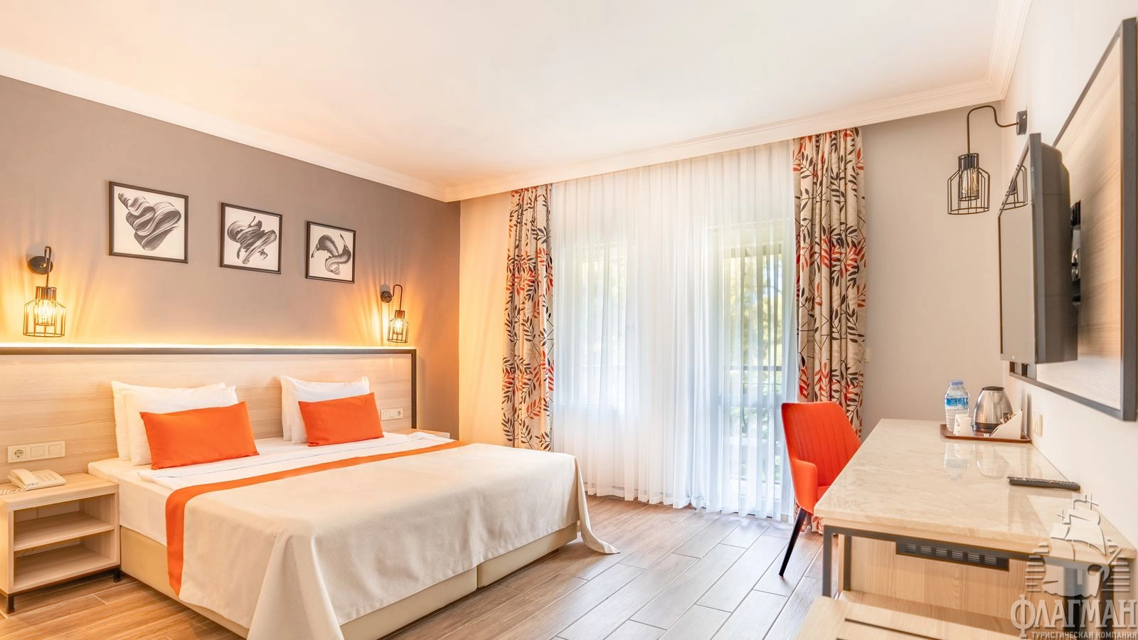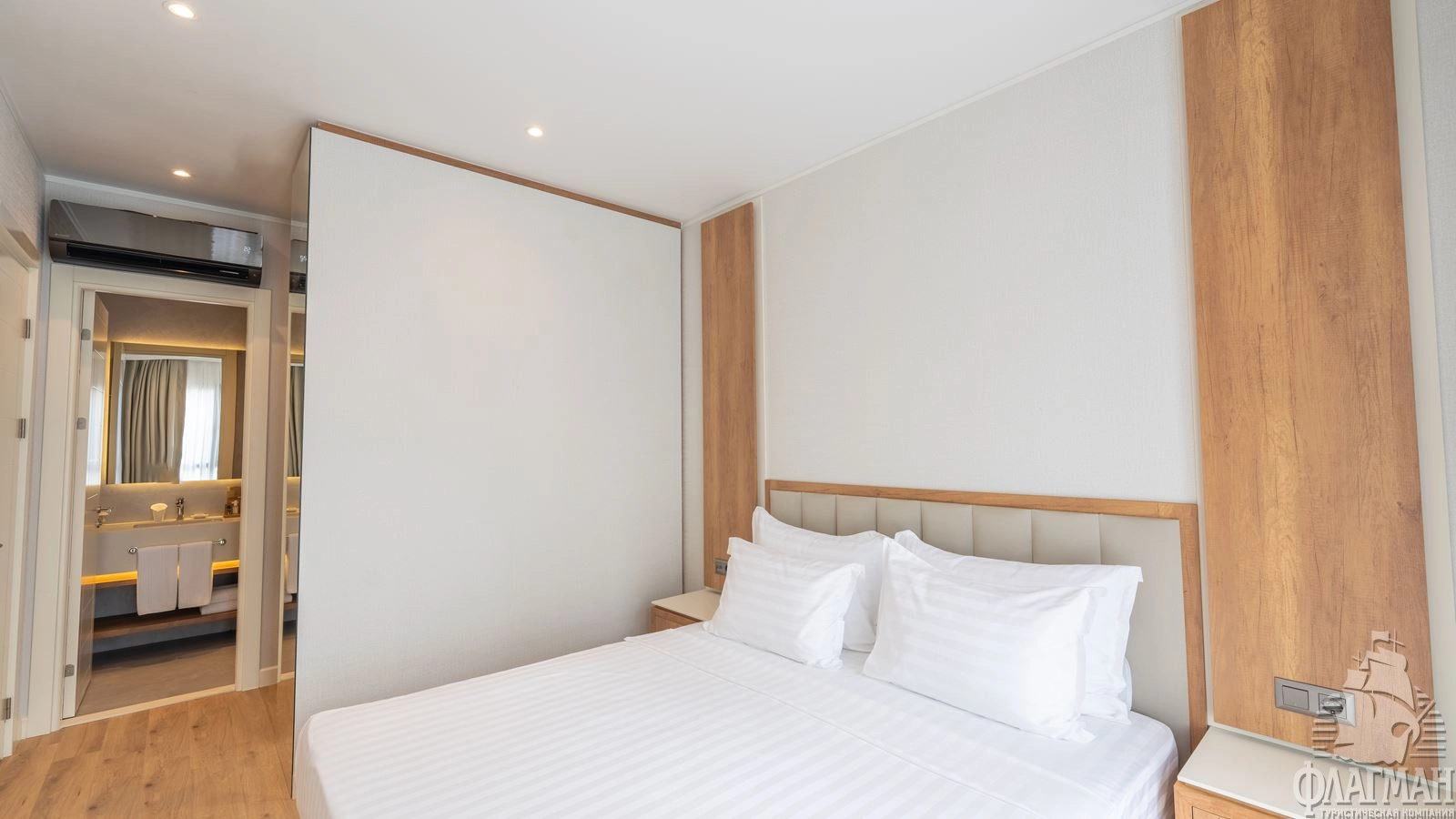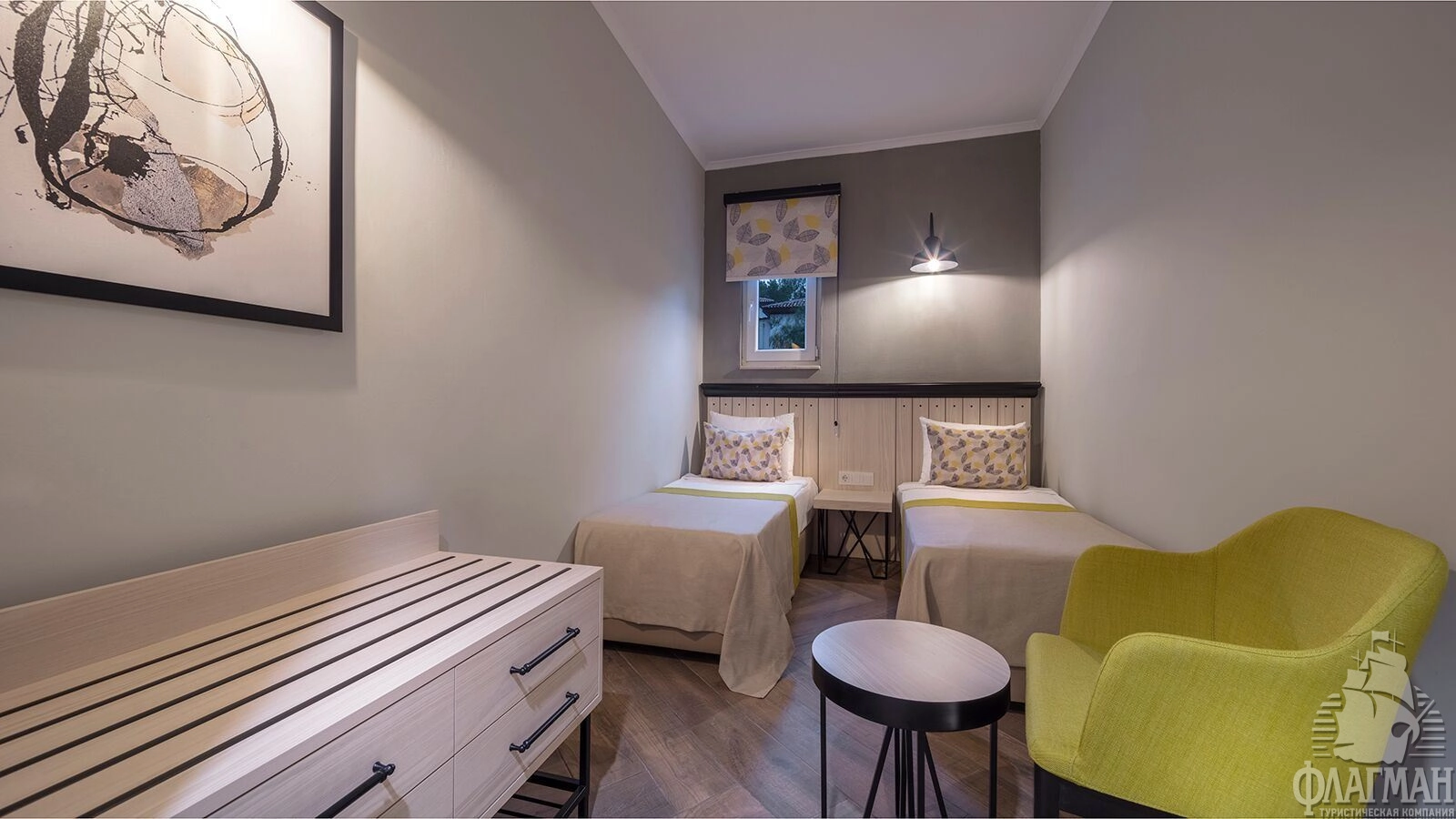 - 61 двухкомнатных Family Room (межкомнатная дверь, двуспальная кровать 180х200 см + 2 односпальных кровати 80х190 см, балкон, ванная комната с душем, вид на сад, макс. 2+2 чел., 35м2);