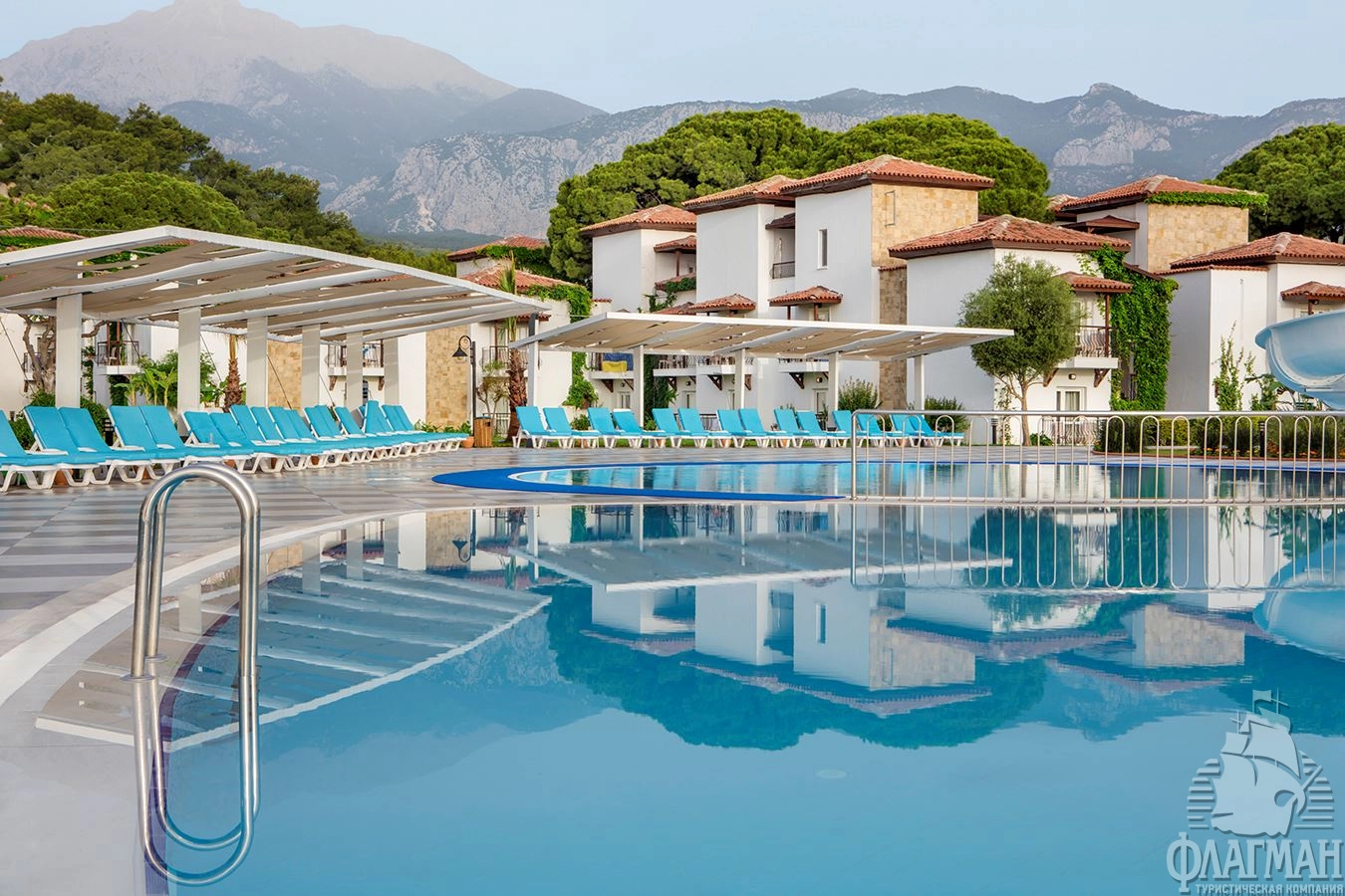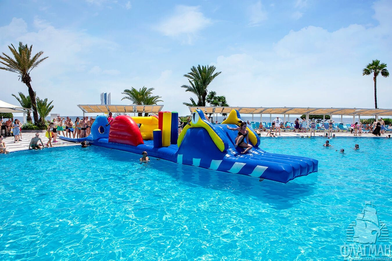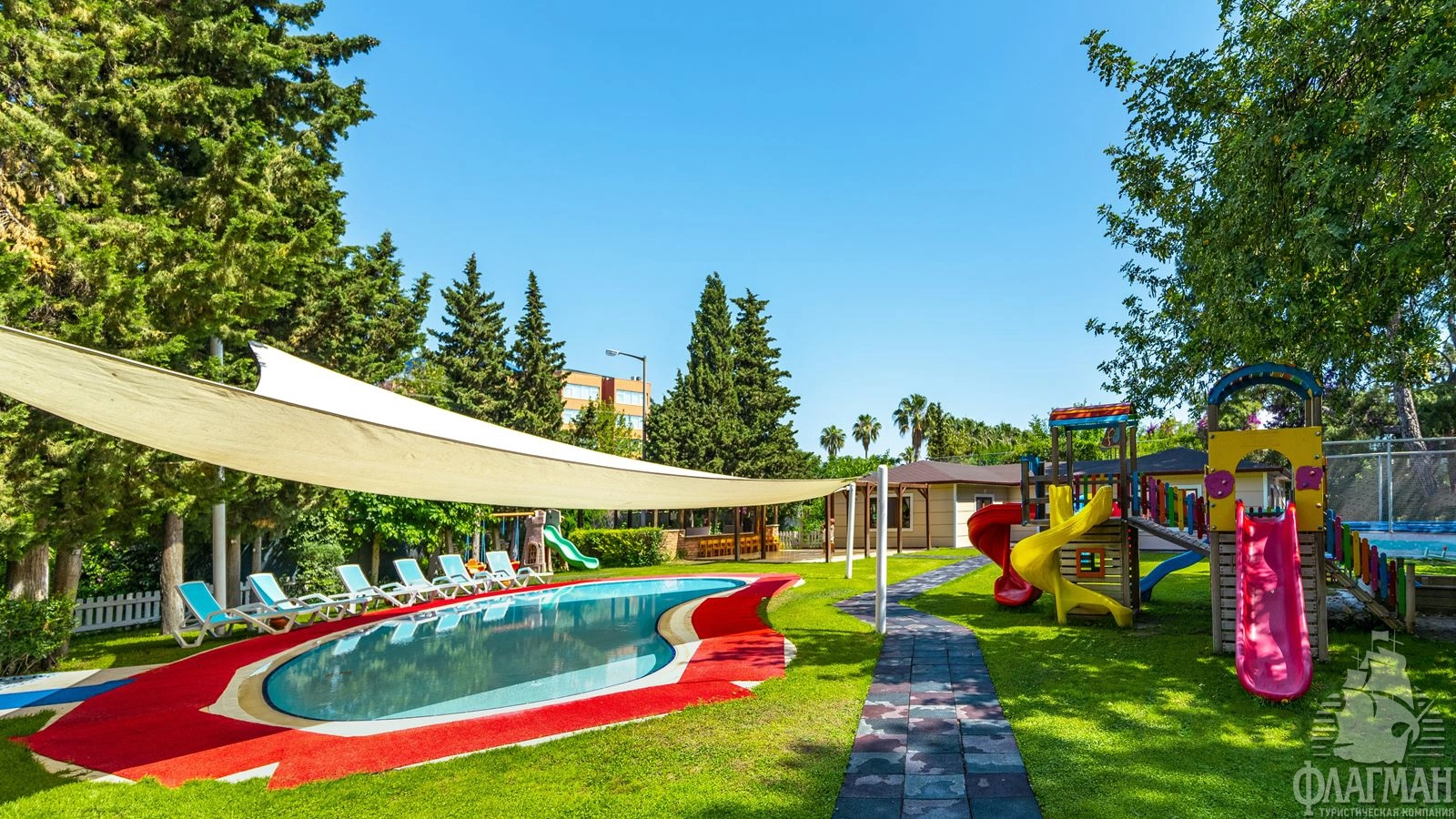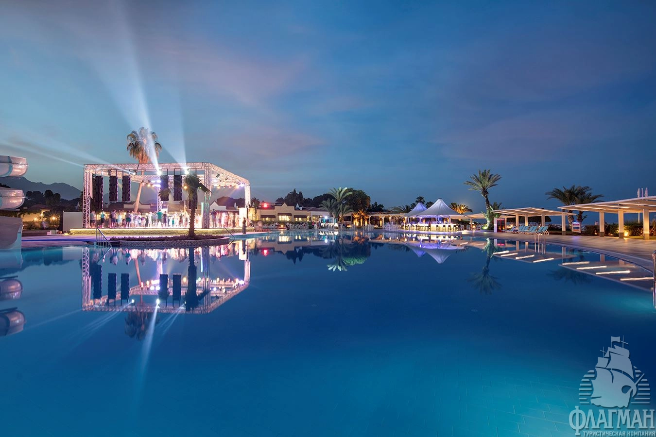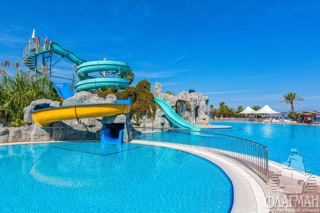 - 7 открытых бассейнов с пресной водой, без подогрева (3 бассейна для взрослых и 4 для детей), часы работы 09:00-18:00.