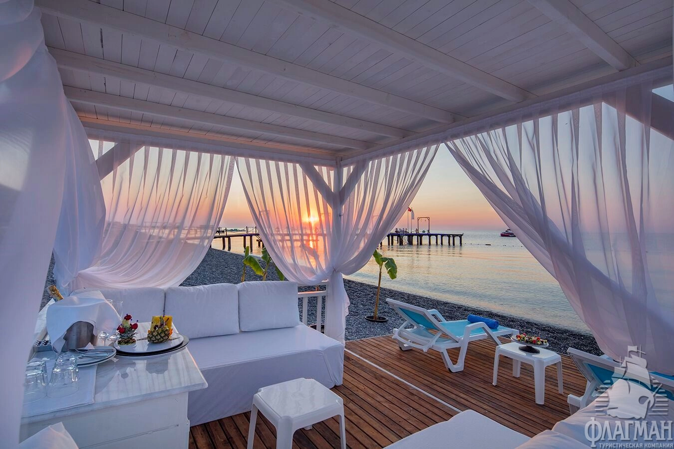 - Пляжные полотенца, зонтики, матрасы и шезлонги – бесплатно.