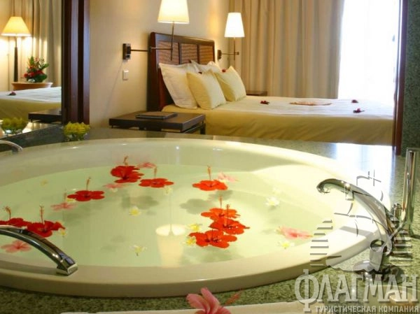 - 96 Junior Suites (68 м², макс. 3 или 2+2 реб до 18 лет). Номера улучшенной планировки. Спальня с кроватью king size, более просторная зона отдыха, небольшой обеденный стол, меблированный балкон или терраса, ванная комната с ванной, душем и небольшой гардеробной. Вид на сад и частично на океан. 2 номера подходят для людей с ограниченными возможностями. Есть номера interconnecting.