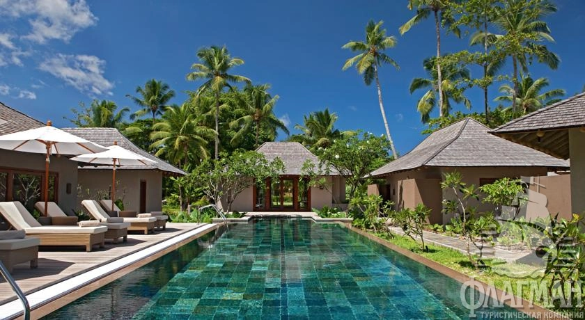 - 10 Family Villa - 2 bedrooms (330 м², макс. 4 или 2 + 2 реб. до 13 лет +1 infant). Просторные виллы, расположенные недалеко от пляжа. Две спальни (одна с кроватью king-size, другая – с кроватями twin), две ванные комнаты, обеденный павильон на открытом воздухе, мини-кулер с выбором вин, частный мини-садик с бассейном.