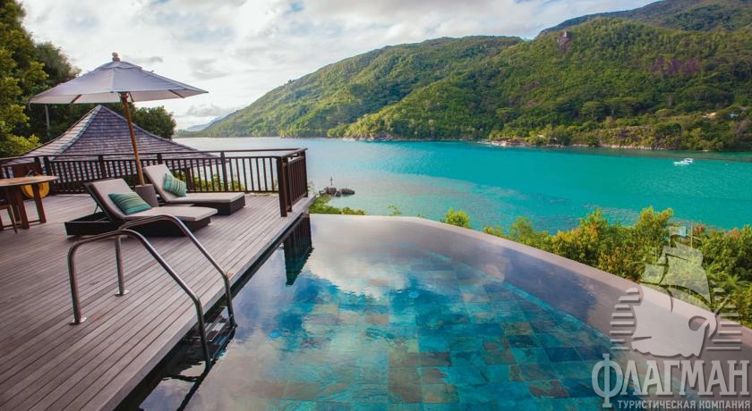 - 5 Hillside Villa -1 bedroom (120 м², макс. 2 чел). Расположены на возвышенности с прекрасным видом на морской заповедник Port Launay Marine Park. Спальня с кроватью king-size, гостиная и обеденная зона, ванная комната с ванной и душем, мини-кулер с выбором вин, частный бассейн на террасе.