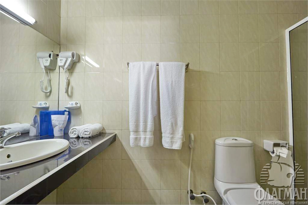 - 76 Deluxe (макс. 3 или 2+2 чел). Ванная комната с ванной. Есть телевизор, минибар, сейф, фен, набор для приготовления чая, кофе.Есть совмещенные номера.