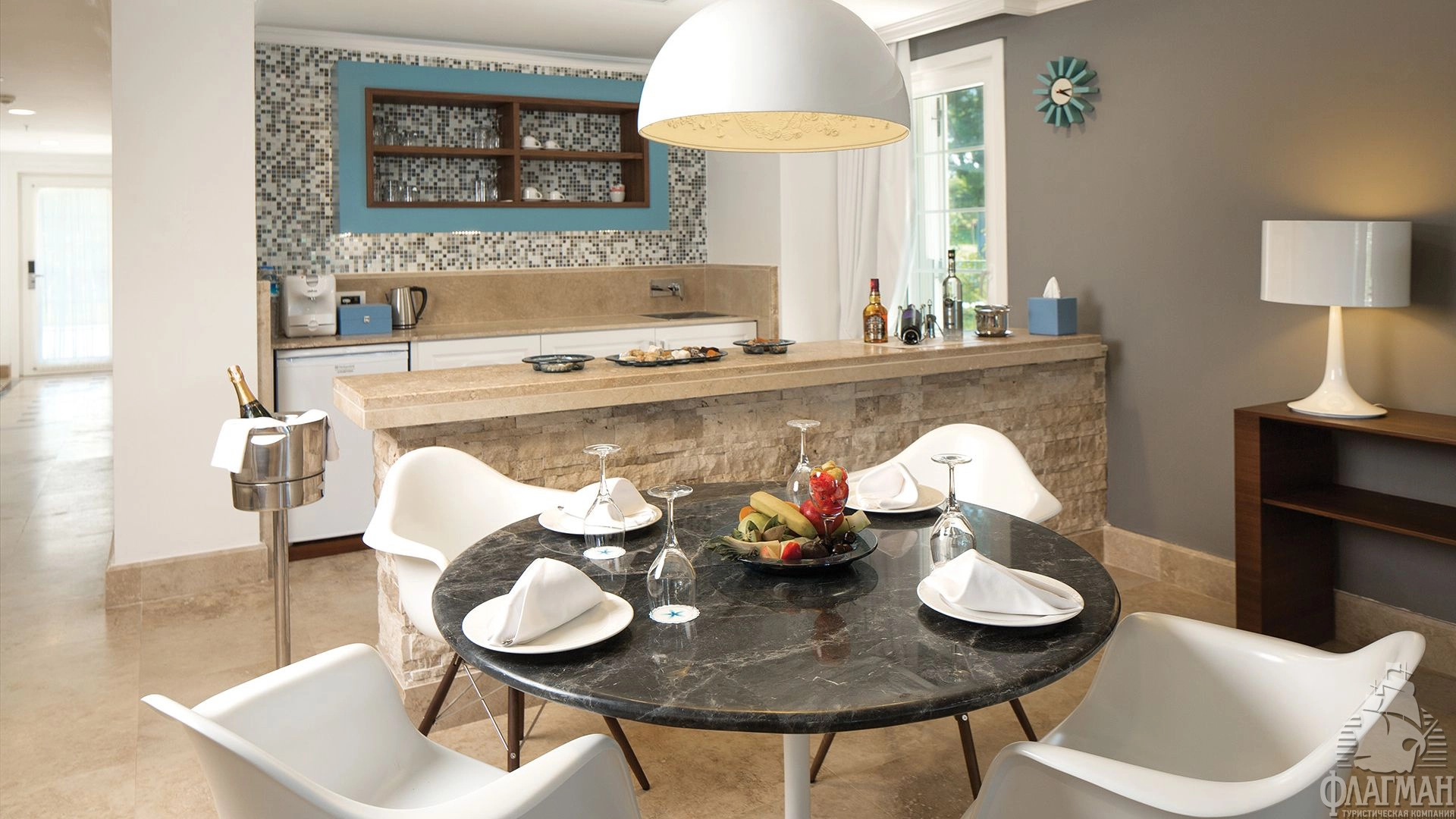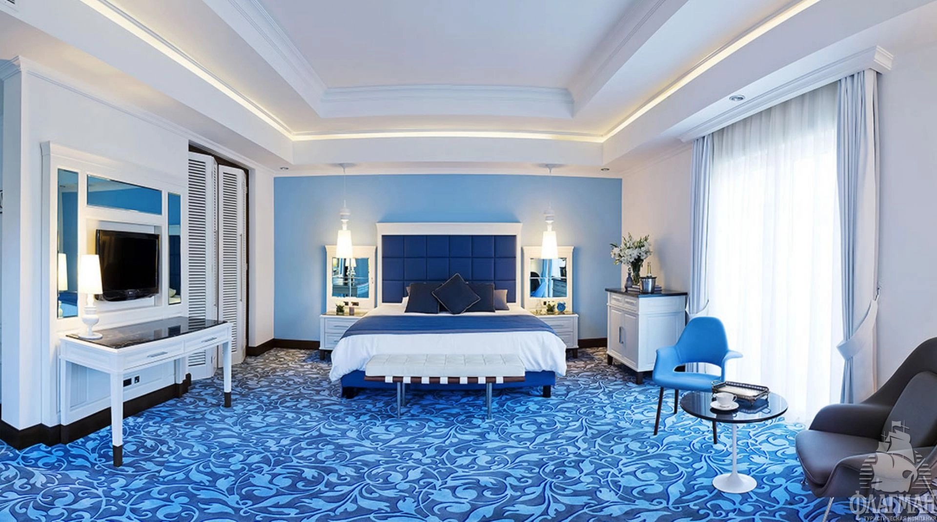 - 26 двухуровневых Azure Villa 2 - с 2 спальнями (тип А: на первом уровне: гостиная с мини-кухней и барной стойкой, терраса, на втором уровне: 2 спальни с дверью, 2 ванные: одна с джакузи и душем, другая с ванной и душем; тип Б: гостиная с мини-кухней и барной стойкой, спальня с дверью, ванная с ванной и душем, терраса, на втором уровне: спальня с дверью, ванная с джакузи и душем, макс. 4+2 чел., 180-230 м2, VIP-сервис);