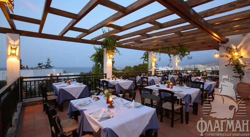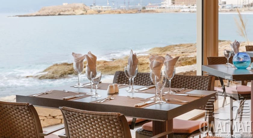 - 4 тематических ресторана (по предварительному бронированию): ресторан «Cochlias» (в Bungalow, на берегу моря BBQ буфет) – ужин; «Platia» (греческая таверна - в Terra Building) – ужин; традиционный критский ресторан «Pithos» (панорамный вид на Херсониссос) – ужин; Restaurant «Estia» (итальянская кухня в Terra Building) –ужин