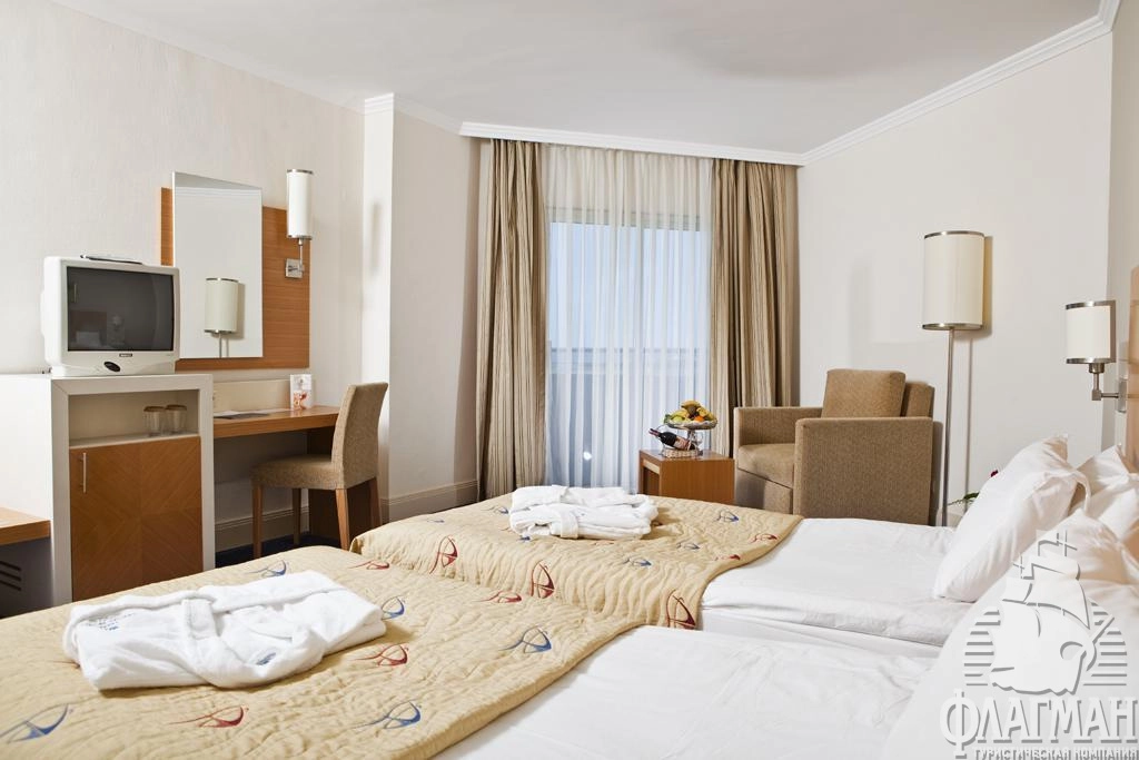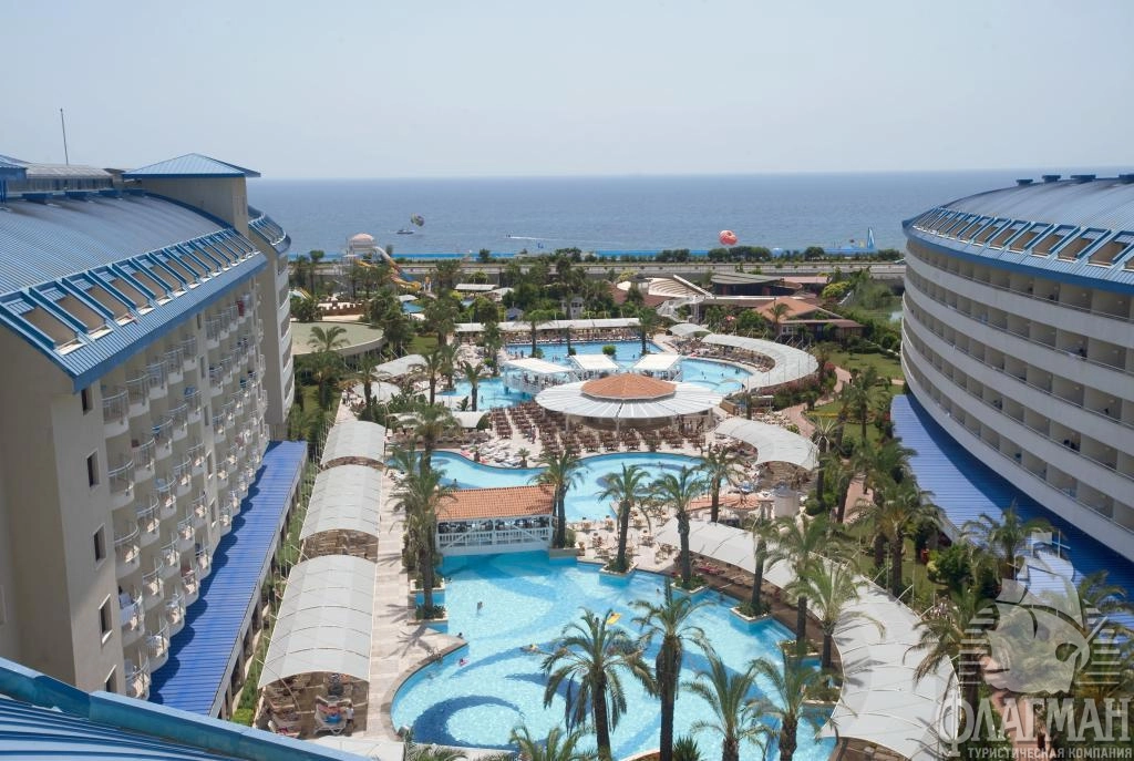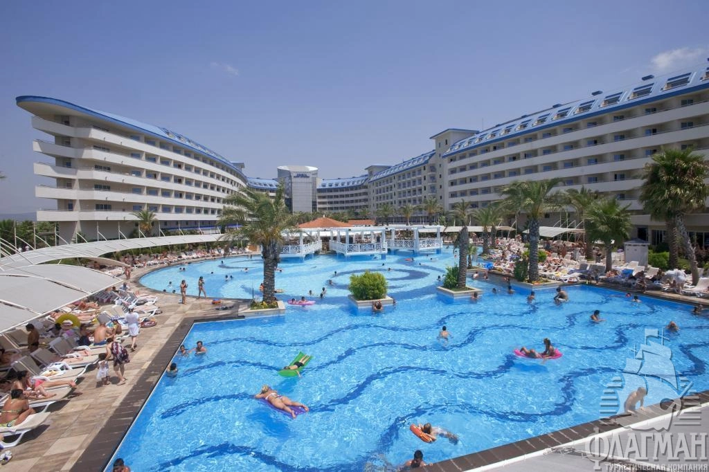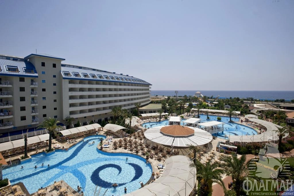 Кристалл Адмирал Ресорт 5* – большой красивый современный отель с компактной территорией и развитой инфраструктурой, через дорогу от моря. Пляж собственный, широкий, песчаный с подземным переходом. В гостинице большие хорошие номера и качественное питание по системе "ультра всё включено". В отеле сделан акцент на семейном отдыхе. Входит в большую турецкую сеть качественных гостиниц Crystal Hotels.