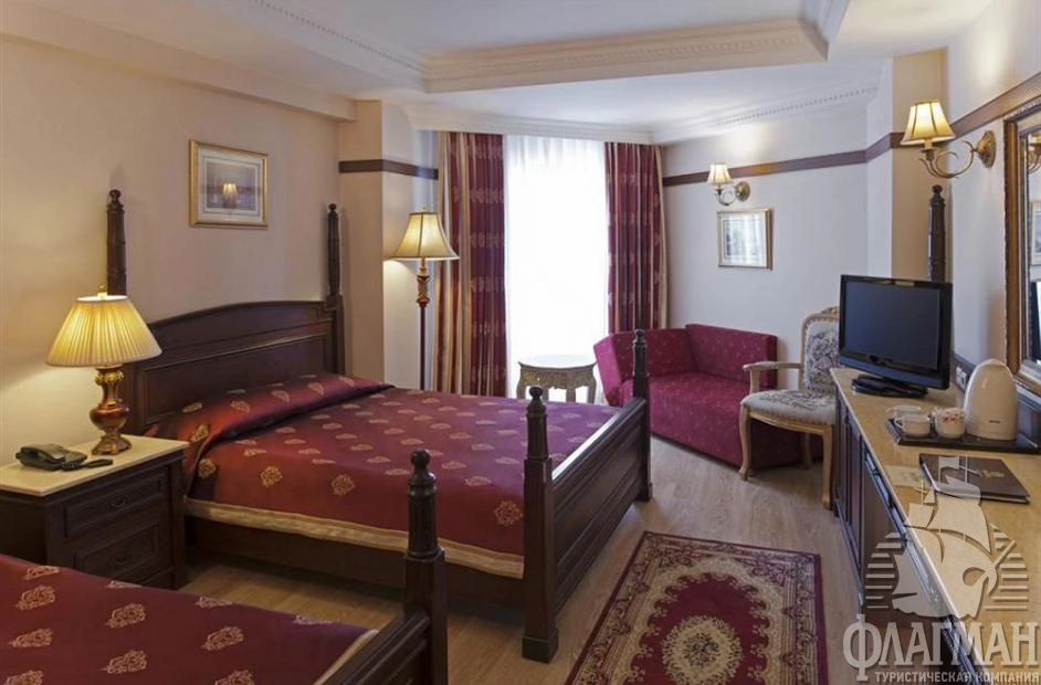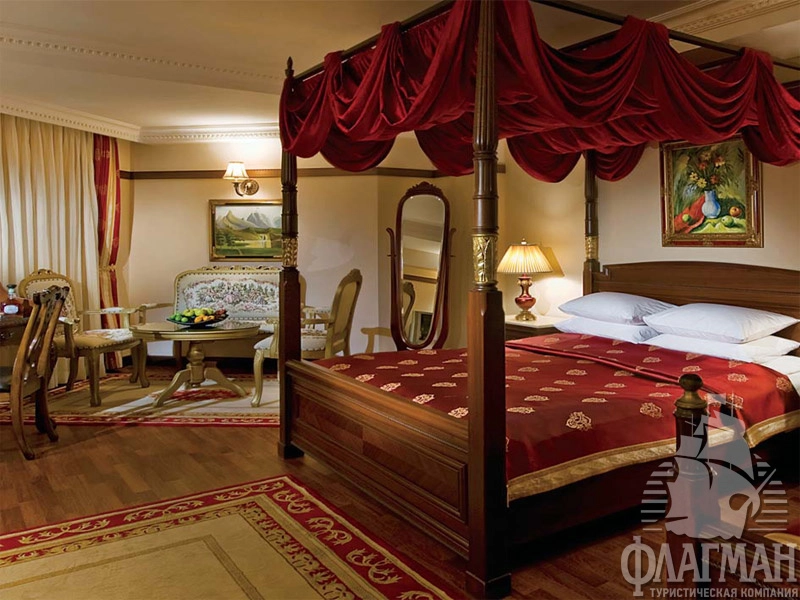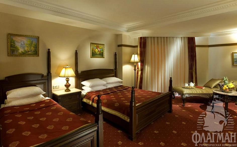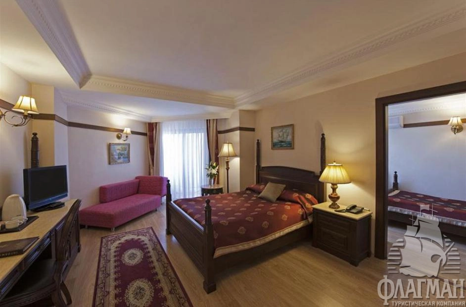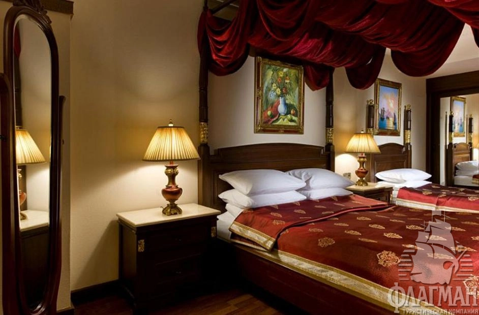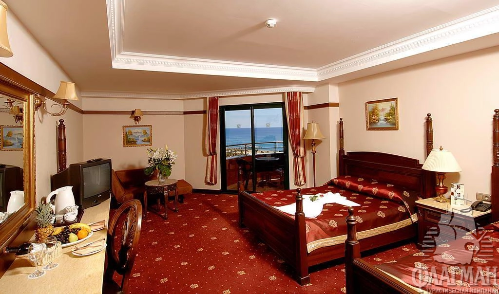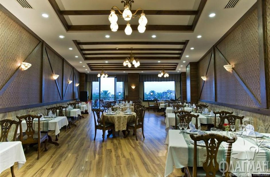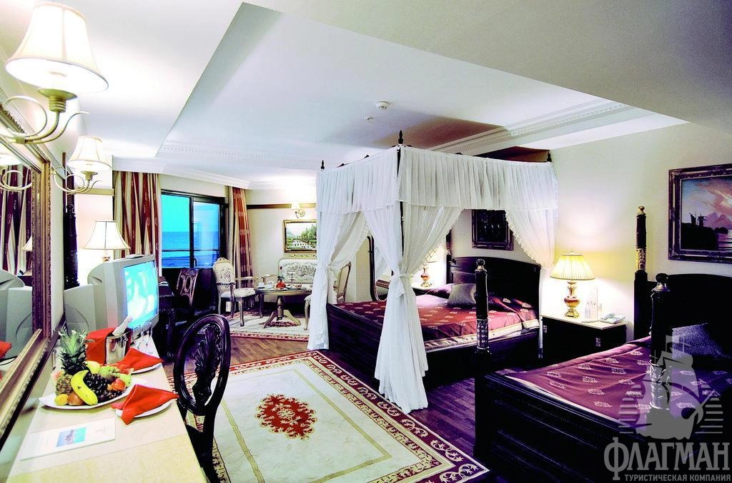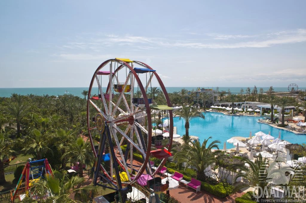 Дельфин Палас 5* – отель принадлежащий известной турецкой сети люксовых гостиниц Delphin Hotels. Интерьеры отеля выполены в османском стиле – богато обставленные номера с красными коврами, деревянными ретро-кроватями и зеркалами в позолоченных рамах. Как и полагается, здесь есть почти всё что нужно для отдыха: детские площадки с аттракционами, аквапарк с водными горками, бассейны, СПА-центр, фитнес, теннисные корты и боулинг. В гостинице большой выбор баров и a la carte ресторанов. Компактная, но очень зеленая территория. Активная анимация в течении всего дня и вечером. Отдых в отеле рекомендуется для семей с детьми самого разного возраста.