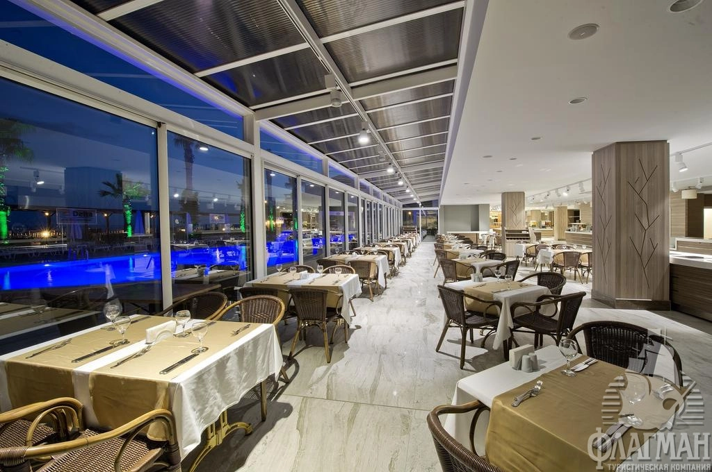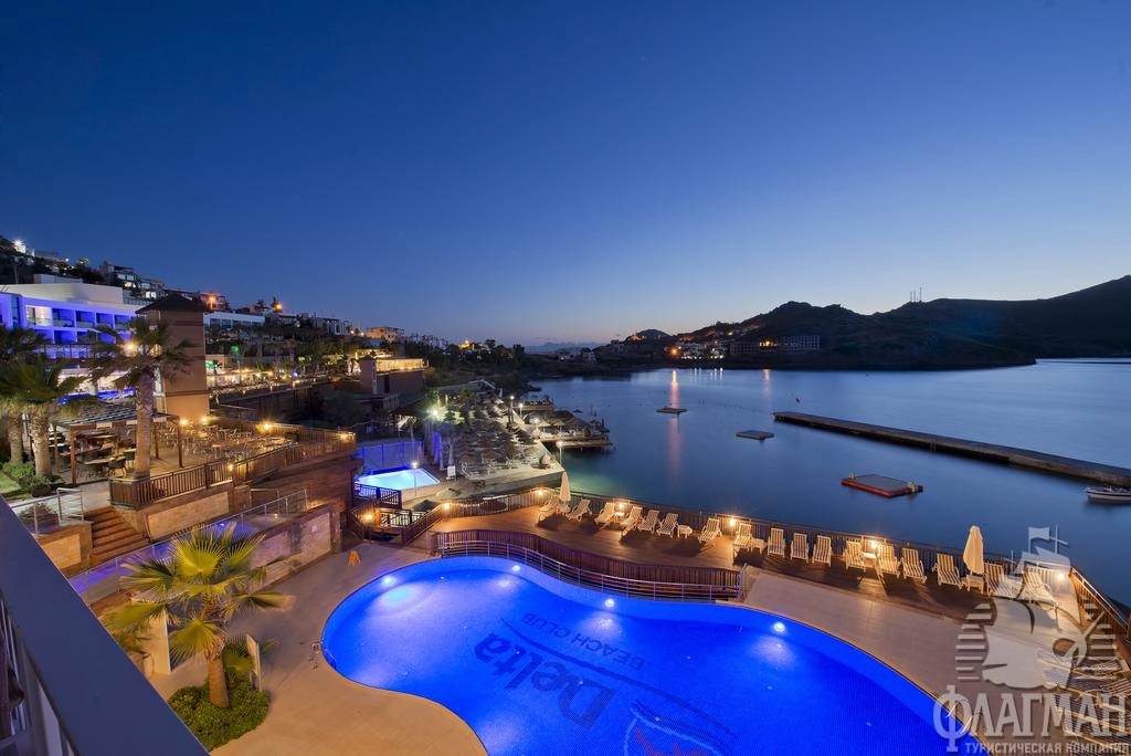 Приятный отель Делта Бич Резорт 5* славится необычной планировкой: белые корпуса отеля, расположенные на склоне горы, спускаются к морю. На территории есть несколько баров и ресторанов, крытый и открытые бассейны, водные горки, спа-центр, тренажерный зал, теннисный корт, и детский клуб (4-12 лет). Рекомендуем для спокойного отдыха.