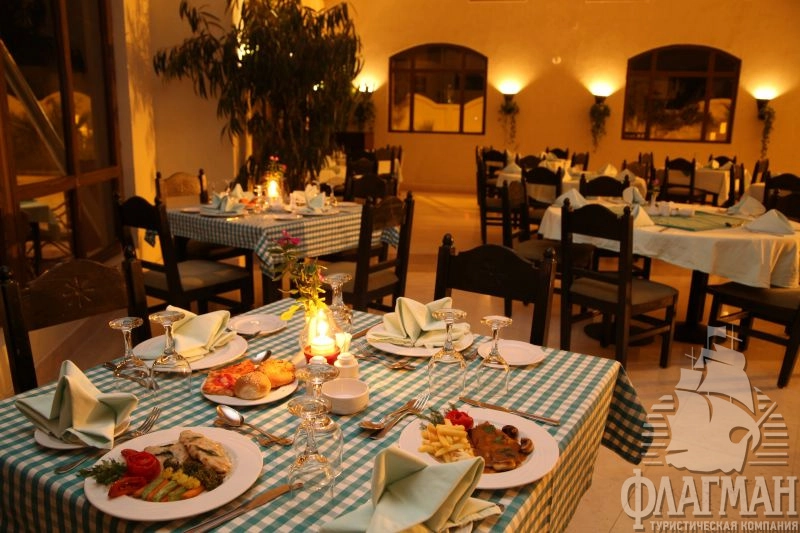 - основной ресторан El Khaima: шведский стол; завтрак с 07:00-10:00, поздний завтрак с 10:00-11:00, обед с 13:00-15:00, ужин с 19:00-21:30.
