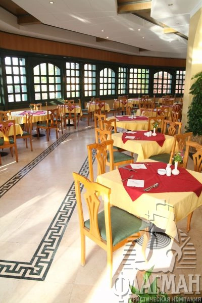 - основной ресторан Green House: шведский стол, вместимость 220 человек в помещении; завтрак с 07:00-10:00, поздний завтрак с 10:00-11:00, ужин с 19:00-21:30, ночные закуски с 23:00-00:00.
