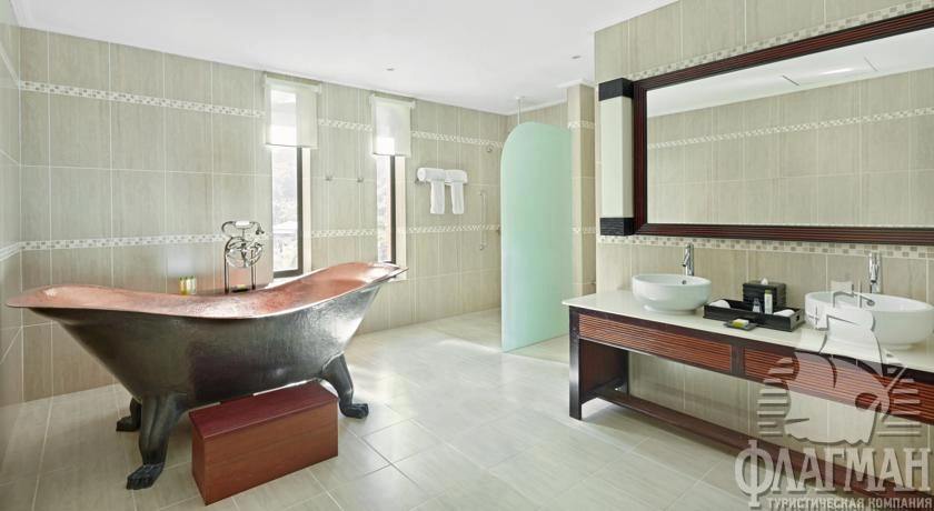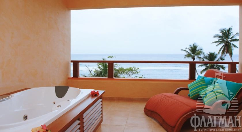 - 6 King Deluxe Ocean View Room (70 м², макс. 3 или 2+1 чел.). Номера с видом на океан. Спальня с кроватью king-size, зона отдыха с небольшим диваном и кофейным столиком, гардеробная, ванная комната с ванной и душем, балкон с джакузи.