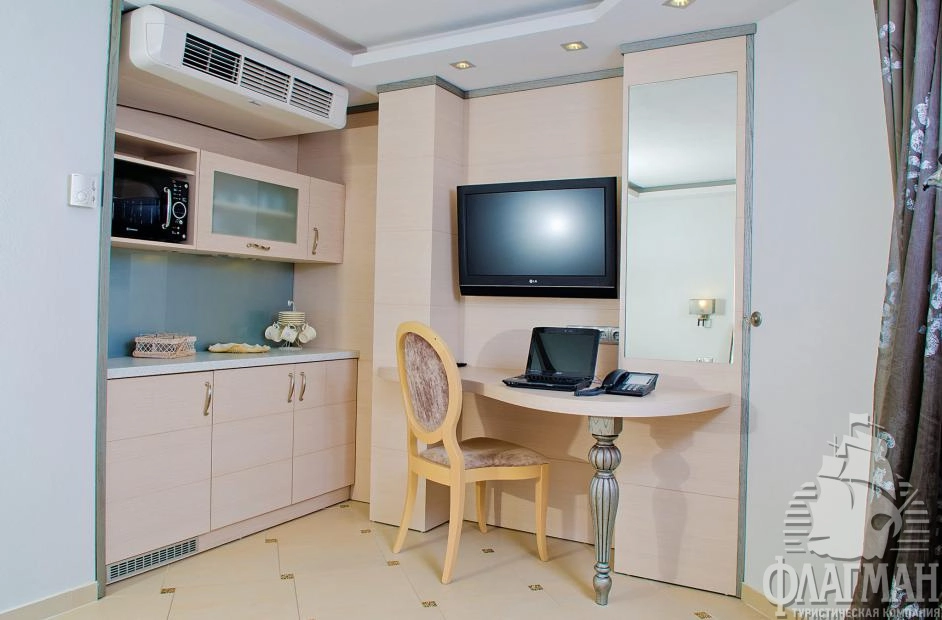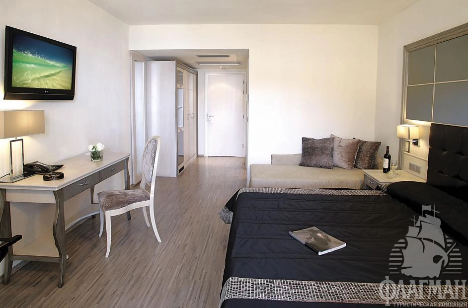 - superior room GV/SV(вид на сад или на море, две односпальные или king-size кровать, доп. – раскладной диван и раскладная кровать, макс. 3+1 чел., 27-30 м2);