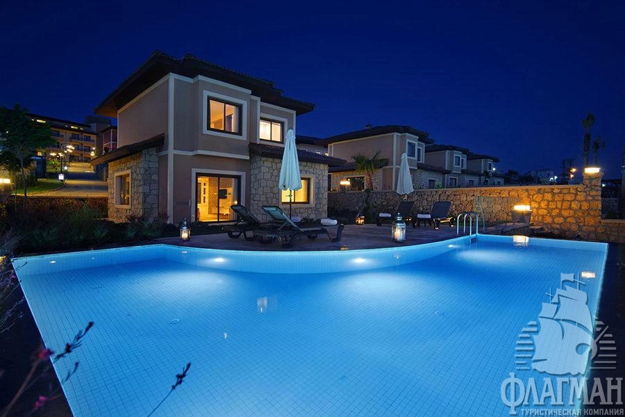 4 executive villa (вид на море, собственный бассейн, на первом уровне: гостиная, спальня, кухня, терраса; на втором уровне: спальня, джакузи; халат, тапочки, макс. 6 чел., 99 м2).