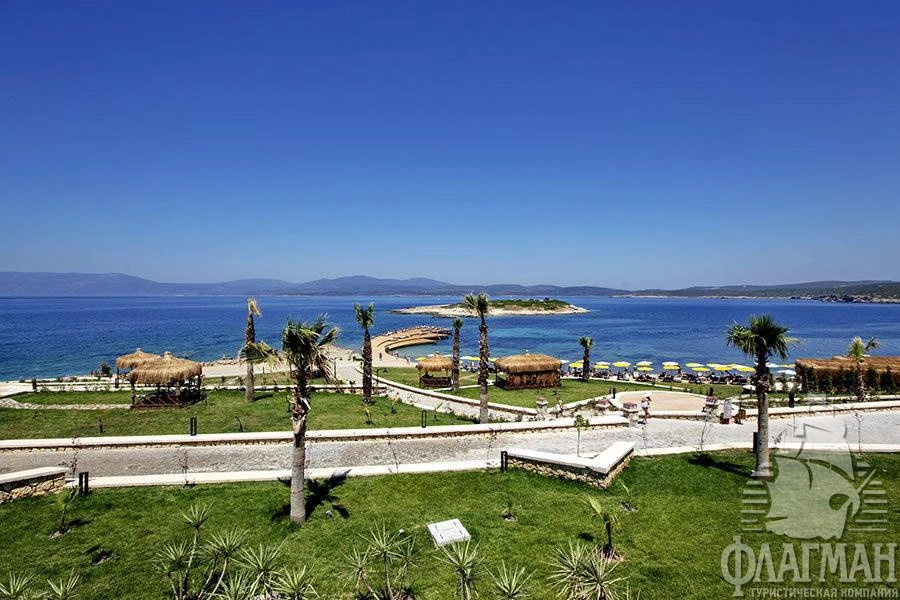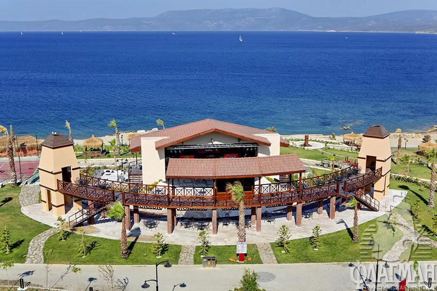 Расположен в 55 км от аэропорта г. Измир, в 30 км от центра г. Измир, в 80 км от центра г. Кушадасы, в поселке Сеферихисар, на берегу моря.
