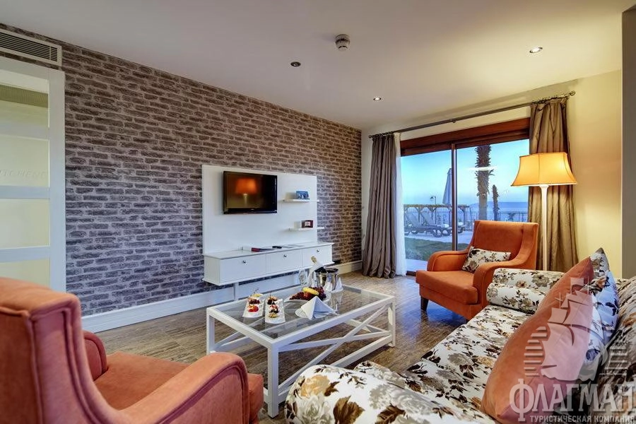 6 двухкомнатных club deluxe suite room (вид на море, гостиная, спальня с дверью, макс. 4+1 чел., 67–69 м2);