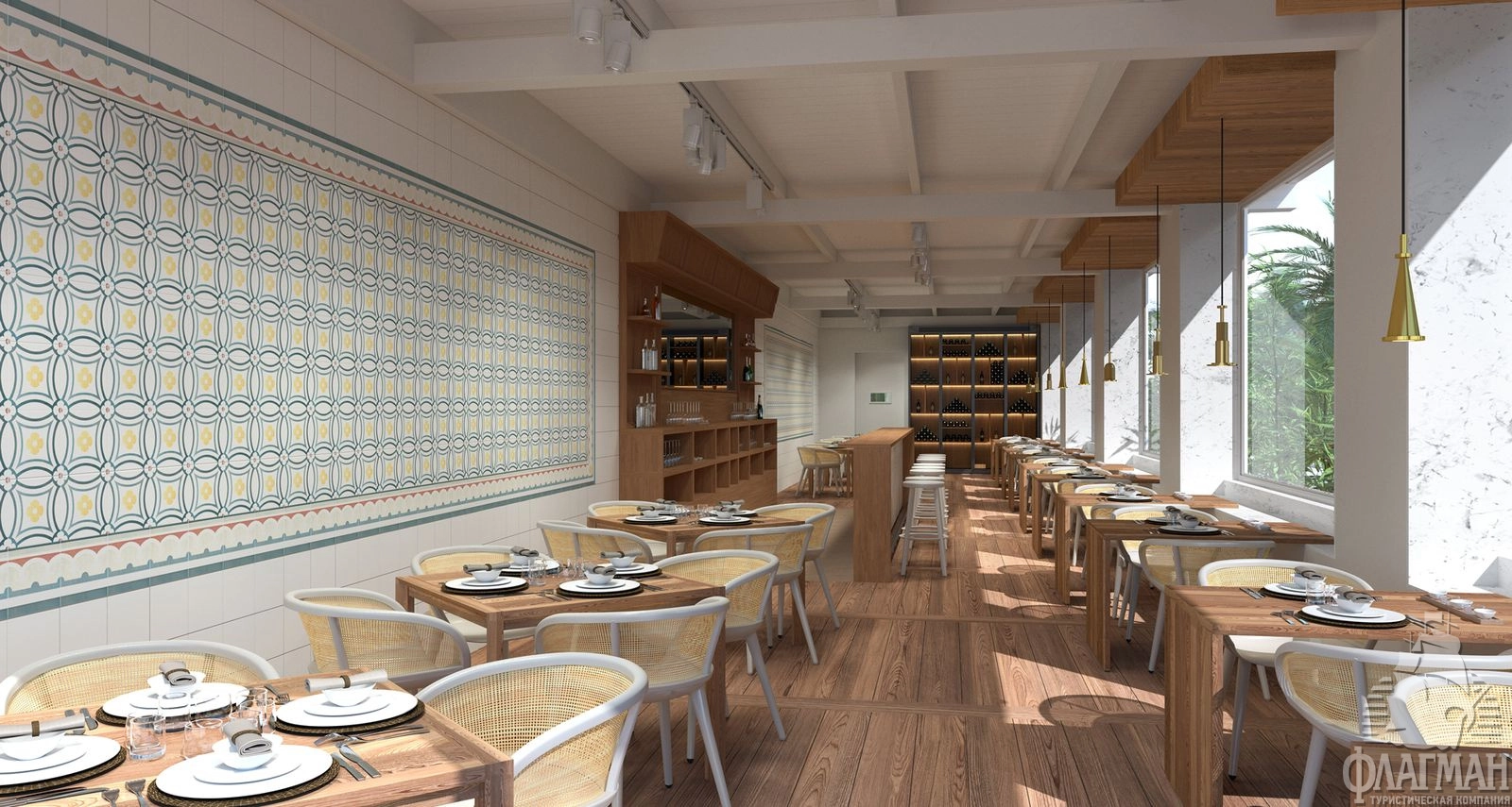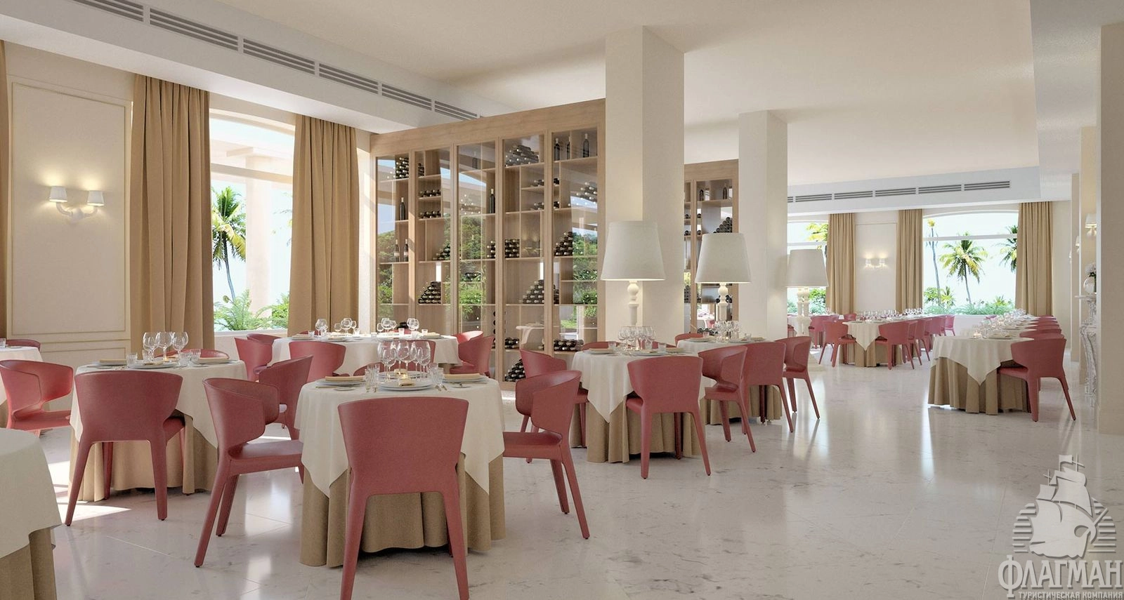 - рестораны a la carte: 7 (Тoscana, шведский стол на завтрак и обед; итальянский a la carte на ужин; средизимноморский, мексиканский, восточный, французский, траттория, Lobster House – cпециализируется на омарах, гриль/мясопродукты (предварительное бронирование необязательно)