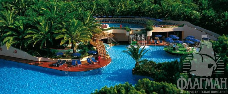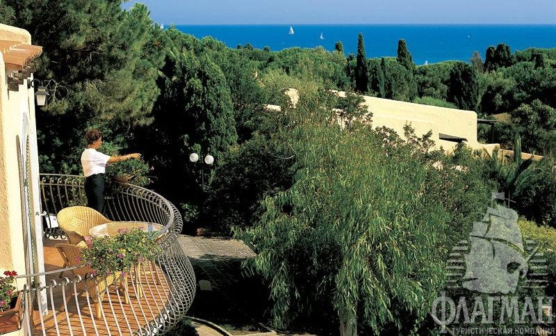 Комплекс FORTE VILLAGE IL BORGO 4* расположен на склоне холма, окруженном приморскими соснами и тропическими растениями.