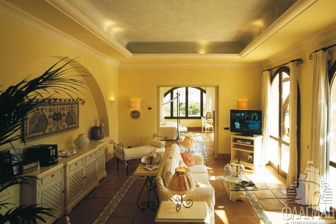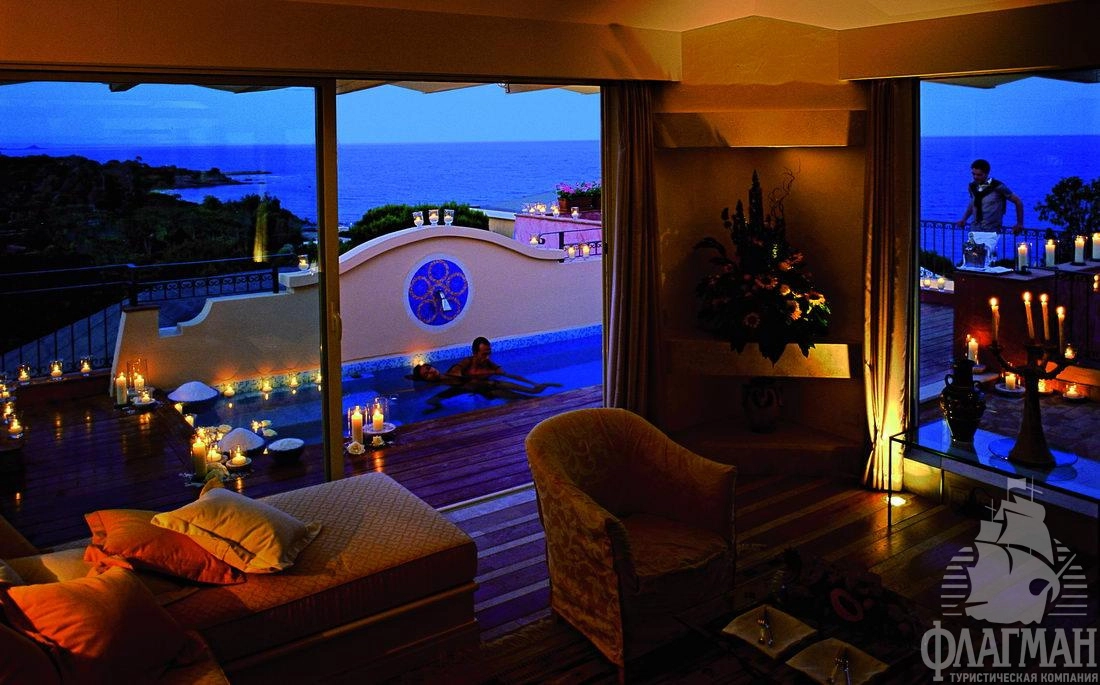 Пятиэтажный отель Castello 5* комплекса Forte Village Resort расположен в сосновой роще, у моря. Один из самых элегантных отелей острова, похожий на старинный замок, окружен вековыми средиземноморскими соснами. С верхних этажей отеля открываются великолепные виды на море и горы. Все интерьеры выдержаны в сардском стиле.