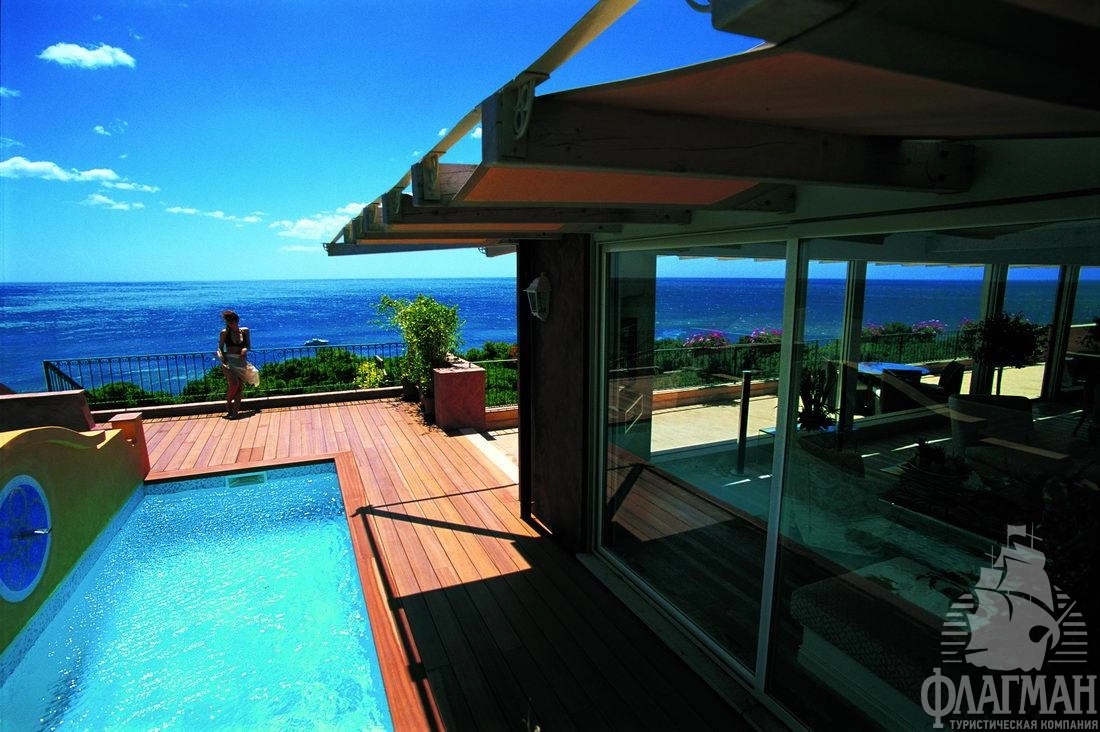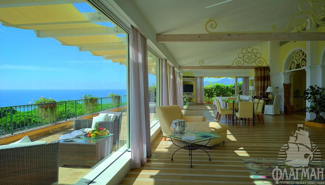 - Suite Chia (сьют с видом на море, раздвижная дверь отделяет гостиную от спальни с двумя кроватями. В ванной комнате гидромассажная ванна и душ. Площадь: 52 м2 + 72 м2 терраса)