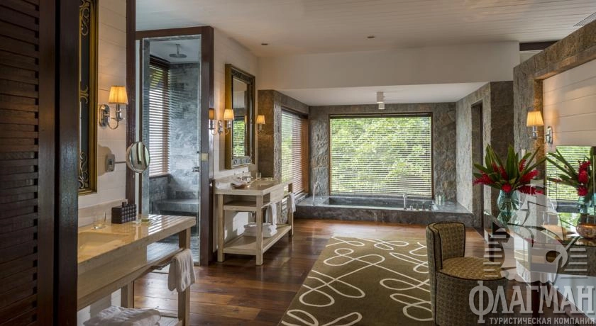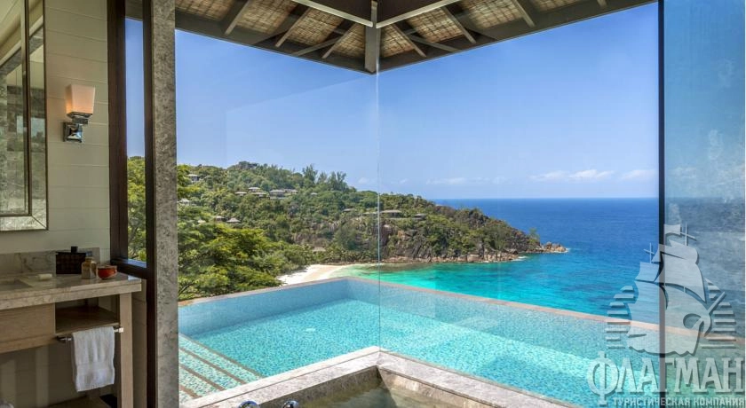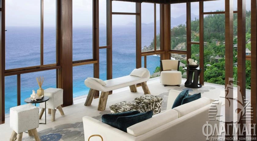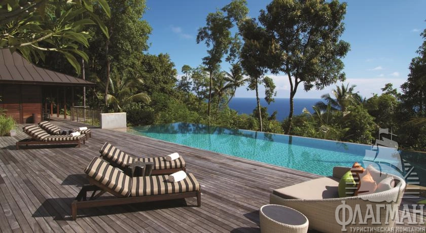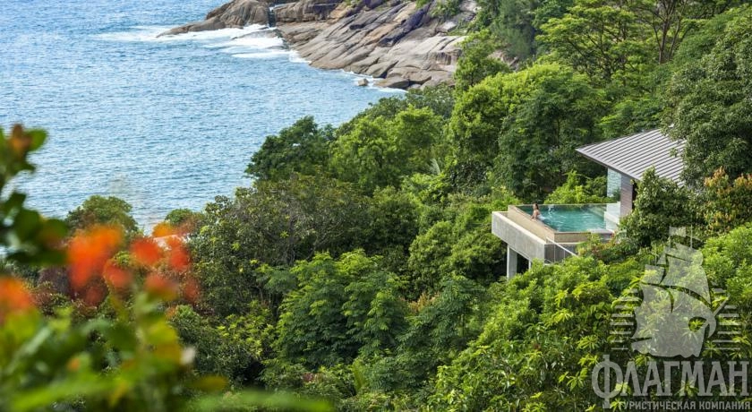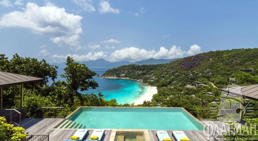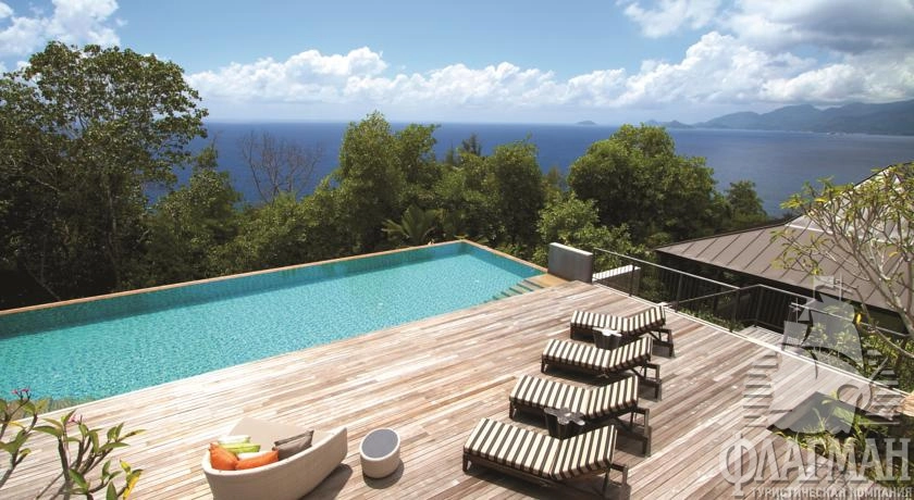 Фор Сизонс Резорт Сейшеллес 5* – отель категории 5* De Luxe на юго-западе острова Маэ, на пляже Petite Anse. Один из лучших отелей острова. Гордость курорта - пляж с черными гранитными валунами, белым, как пудра, песком и лазурной синевой сливающихся на горизонте моря и неба. Гостям предлагаются комфортные виллы стоящие как гнезда на высоких сваях, среди кокосовых пальм и манговых деревьев. У каждой виллы: частный бассейн, открытый душ, ванная комната со стеклянными стенами и просторная жилая часть с видом на Индийский океан и окружающие пейзажи. Для гостей: кондиционер, телевизор, телефон, iPod –станция, Wi-Fi, сейф, фен, мини-бар, набор для чая и кофе. Для детей специальная программа «Kids for All Seasons» с игровой зоной и бассейном. В отеле 3 ресторана и 2 бара: ZEZ – ресторан международной кухни с азиатскими мотивами, Kannel – морепродукты и традиционная креольская кухня, Koi – ресторан японской кухни. В ZEZ Lounge и в Kannel Bar: легкие закуски и коктейли. На пляже гости найдут уголок для пикника и Steak Shack, где на гриле готовят мясо и морепродукты. Рекомендуем для отдыха взыскательных клиентов.