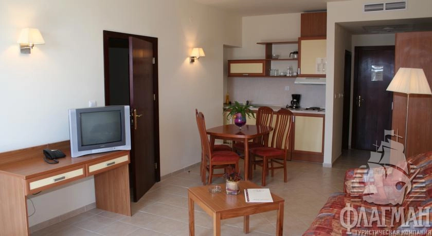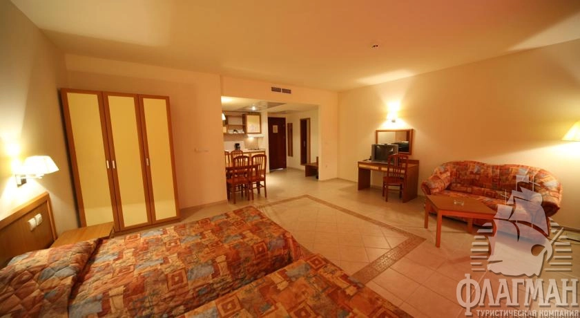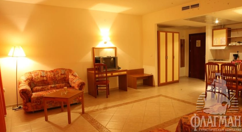 - 140 one-bedroom apartment (спальня и гостиная с раскладным диваном и со смежной дверью, оборудованная кухня, макс. 4 чел., 30 м2).