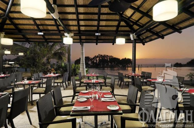 - основной ресторан-буфет Pangea высокой международной кухни, ежедневно новое предложение (на 468 мест, из них 152 – на террасе над озером); расположен рядом с бассейном; форма одежды: resort casual днем, resort upscale вечером; время работы: завтрак с 07:30 до 11:30, ужин с 19:00 до 23:00