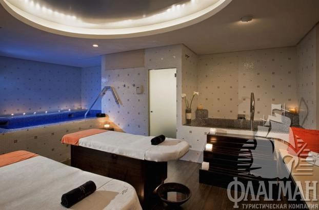 - SPA в помещении с полным спектром услуг: крытый бассейн, бассейн пассивного плавания, гидромассажные лежаки, 7 массажных кабинетов, джакузи, сауна, термальный душ, индивидуальная ванна пассивного плавания, душ Vichy, зона для релаксации, парикмахерская, процедуры по уходу за лицом и телом, бутик (платно)