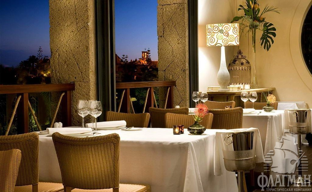 - 8 ресторанов (El Bernegal – международная кухня, открыт на завтрак и ужин, в вечернее время можно насладиться представлением show cooking; a la carte Las Aguas на территории Villas – эксклюзивный ресторан с тщательно продуманным интерьером; a la carte La Brasserie – французская кухня, дегустация аперитивов, закусок, обеды и ужины; a la carte La Trattoria – уголок Италии с теплой и веселой атмосферой; a la carte Beach Club – средиземноморская кухня, большой выбор морепродуктов, всегда свежая рыба; a la carte La Tasca – большой выбор испанских блюд, каждый вечер живая испанская музыка; a la carte La Hacienda – кухня трех континентов)