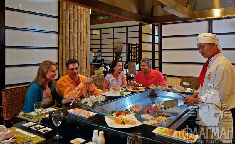 - рестораны: 7 (главный ресторан – международная кухня, Mediterraneo – средиземноморская кухня, Portofino – авангардная итальянская кухня, Pescador – морепродукты, Mikado – японская кухня, Le Gourmet – изысканный ресторан, Oasis – международная кухня)