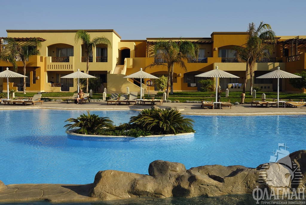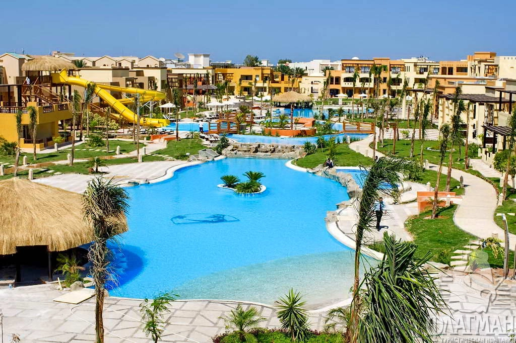В 2,5 км от аэропорта Хургады, в 7,5 км от центра города, на второй линии.