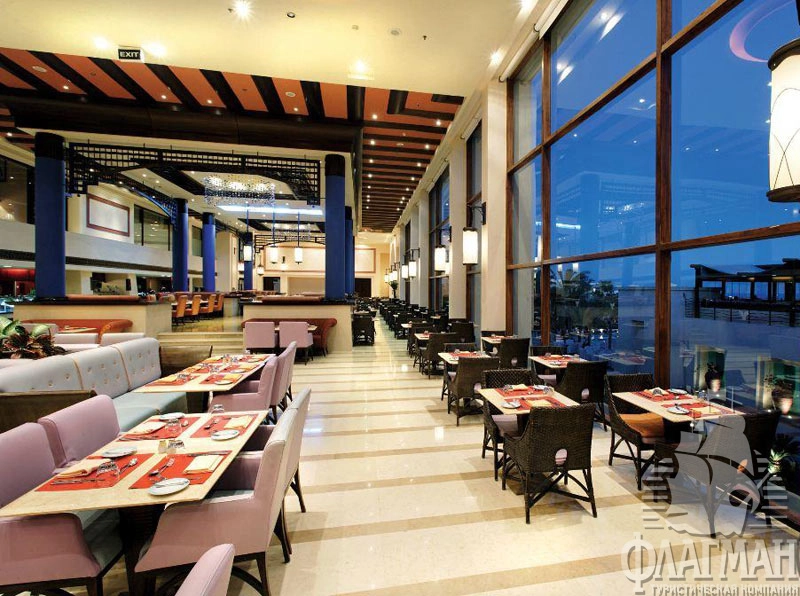 - рестораны a la carte: 3 (Mezzaluna -итальянский ресторан, The Palms & Grill Bar - морепродукты и мясо гриль,открыт на обед и ужин, Silk Road -тайская, индийская, азиатская кухня , открыт на ужин)