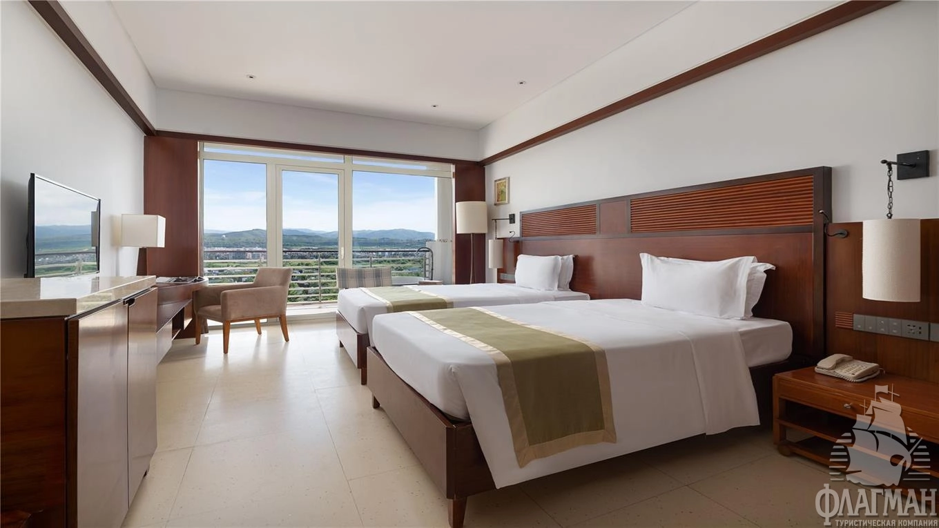 - Deluxe garden view room (на 3-12 этажах, 45 кв. м, спальня, кровать King-size или 2 односпальные кровати, ванная комната, балкон, вид на сад и горы);