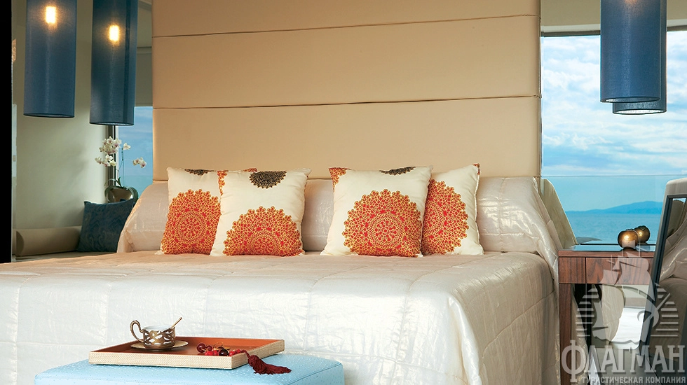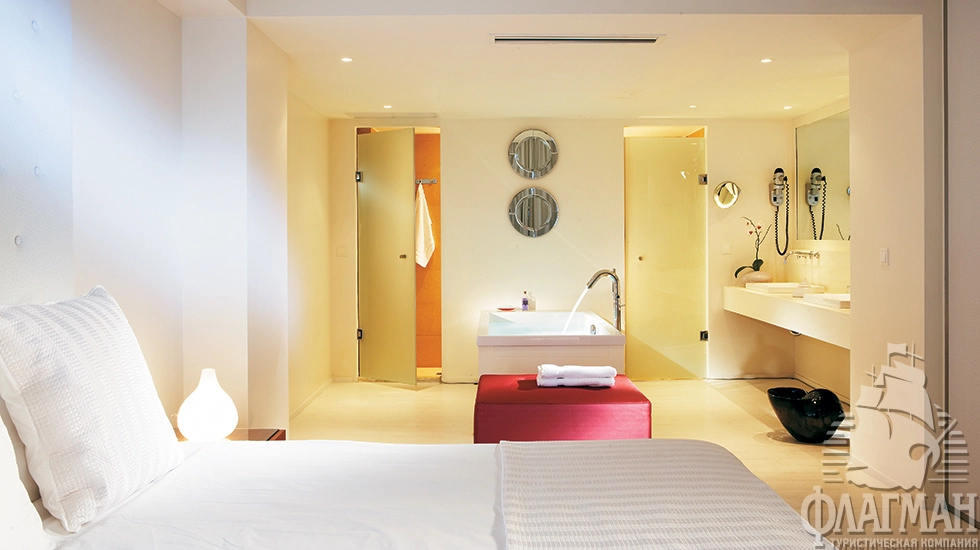 - grand suite one bedroom with SF (прямой вид на море, расположены в крыле Lagoon, спальня и гостиная с раздвижной дверью, двуспальная кровать, доп. – софа, макс. 2+1 чел., 90 м2),