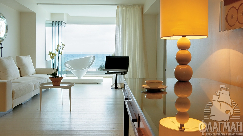 - luxuryroom SV/SSV or lagoon view (вид на море, боковой вид на море или лагуну, расположены в крыле Candia и Lagoon, спальня с гостиной зоной, основная кровать – двуспальная, доп. – кушетка, макс. 2+1 чел., 35 м2),
