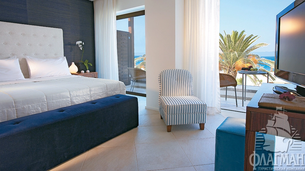 - luxury one bedroom suite with frontal sea view (прямой вид на море, расположены в крыле Lagoon, спальня и гостиная с раздвижной дверью, двуспальная кровать, доп. – софа, макс. 2+1 чел., 70 м2),