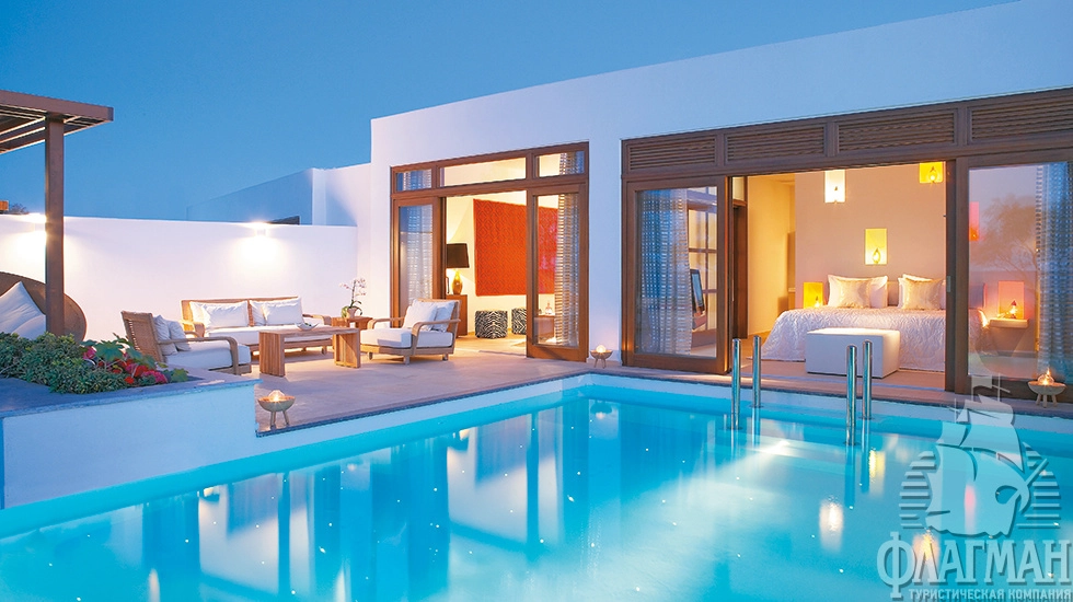 - luxury junior suite with private heated pool & gym SV (на море, расположены в саду, на второй линии от моря, спальня с гостиной зоной, двуспальная кровать, доп. – софа, отдельная зона для фитнеса, терраса (45,5 м2), индивидуальный бассейн с подогревом (18 м2), макс. 2+1 чел., 61 м2),