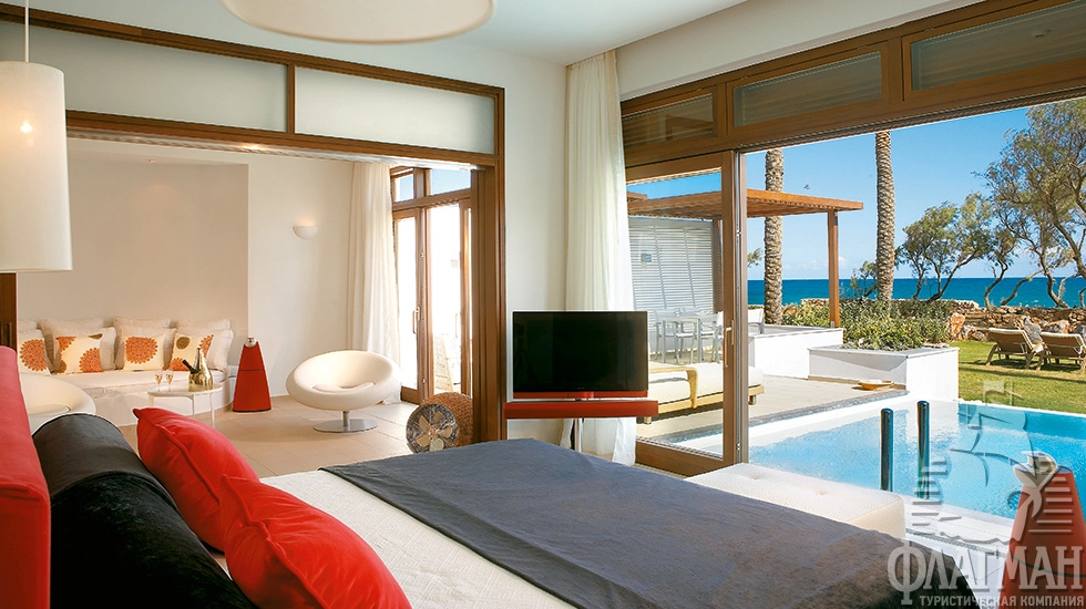 - Creta beach villa with private heated pool & garden SF (прямой вид на море, находится на частном пляже комплекса вилл, на первой линии, 2 спальни – одна из них с гостиной зоной, 2 ванные комнаты, терраса (40–90 м2), индивидуальный бассейн с подогревом (17 м2), с выходом на индивидуальный пляж для вилл, макс. 4 чел., 53 м2),