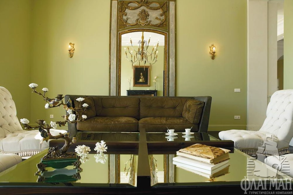 Состоит из основного двухэтажного здания и комплекса вилл в окружении пышных садов.