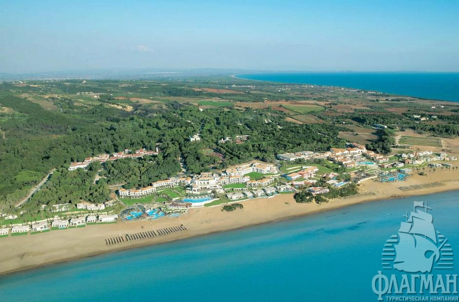 Уникальный комплекс Olympia Rivera Resort расположен на побережье широкого песчаного пляжа, в 60 км от аэропорта Араксос, в 80 км от города Патры, в местечке Киллини, в окружении экзотических садов и эвкалиптового леса.