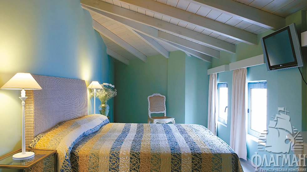 - 2 bedrooms apartment or maisonette (вид на отель, одноуровневые номера (62–65 м2): полностью оборудованная кухня, столовая, гостиная, 2 спальни, двуспальная кровать, доп. – раскладной диван, 2 ванные комнаты; двухуровневые (занимают 2–3 этажи): нижний этаж – гостиная-столовая с полностью оборудованной кухней, основная спальня с двуспальной кроватью, В некоторых номерах дополнительно ванная или душевая. На верхнем этаже небольшая зона для отдыха, дополнительная спальная и ванная комната (двуспальная кровать, доп. – диван, макс. 6 чел., 60–97 м2).