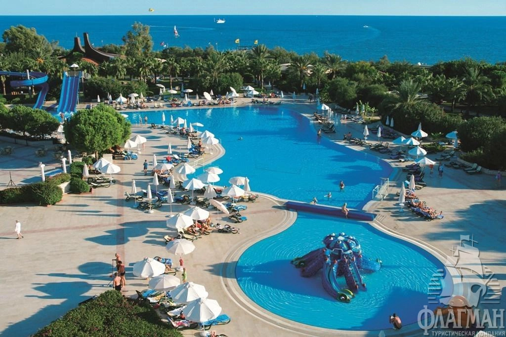 Отель Гриин Макс 5* - один из лучших в Белеке по соотношению стоимость \ качество. При относительно невысокой цене имеет большую зелёную территорию, развитую инфраструктуру и неплохой сервис. Гостиница находится в Белеке в 5 км от посёлка Кадрие на первой береговой линии, имеет собственный песчаный пляж с пологим входом в море. Здесь есть всё для достойного отдыха: рестораны, бары, бассейны, 4 водные горки, теннисные корты с травяным покрытием, поле для мини-футбола, интернет-кафе, фитнес-центр, сауна, мини-клуб (возраст 4-12 лет) и детская площадка. Wi-Fi в лобби предоставляется бесплатно. Рекомендуем для активного семейного отдыха с детьми.