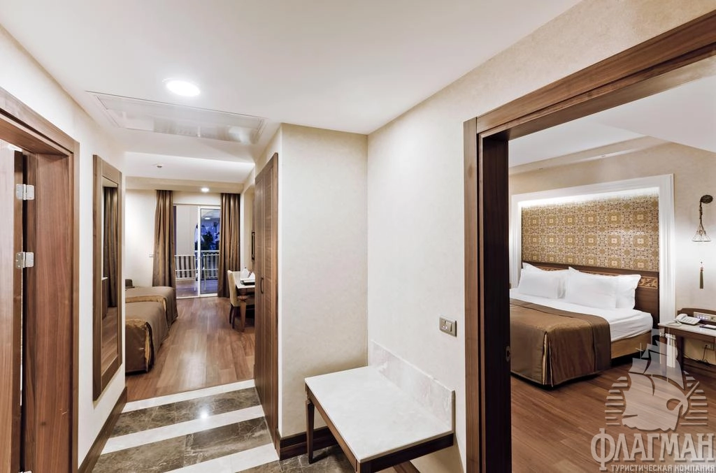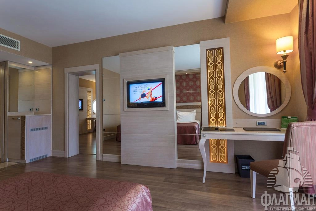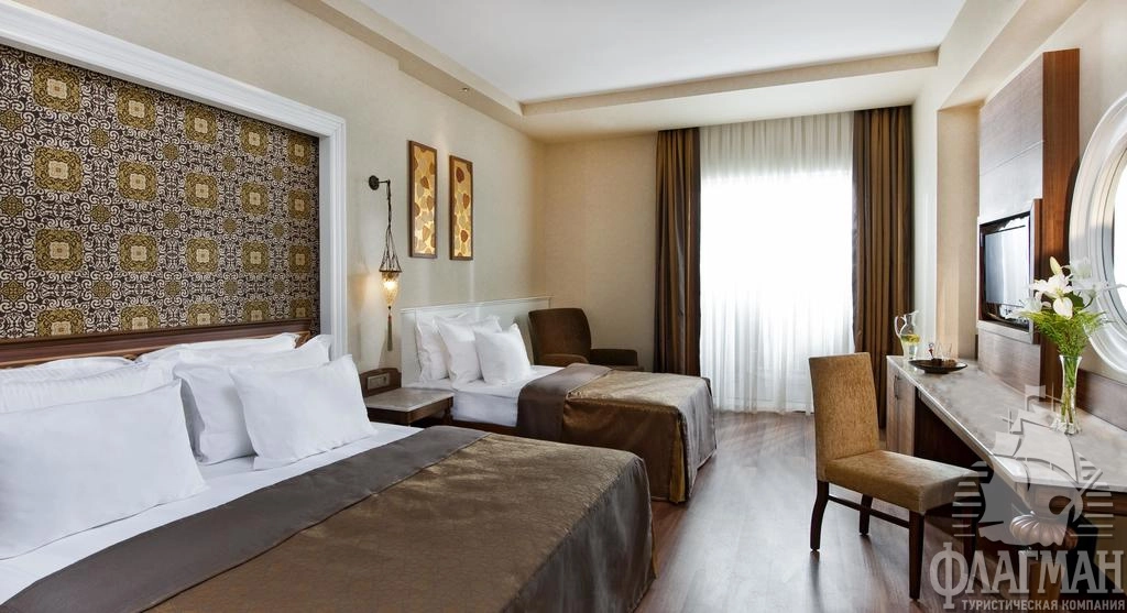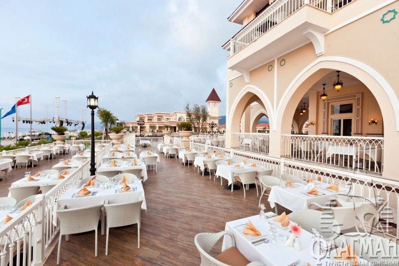 Гюрал Премьер Текирова – хороший современный (постройки 2010 года) отель клубного типа, ориентированный на качественный семейный отдых с детьми, находится в посёлке Текирова в окружении сосновых рощ и мандариновых садов. Как и во всех отелях цепочки Gural (бывшая Ali Bay) в наличии большая территория, широкий полукилометровый песчано-галечный пляж, просторные номера, огромный аквапарк (11 бассейнов, 25 горок). Большой мини-клуб и прекрасная анимационная команда. На территории 13 теннисных кортов с земляным покрытием, прекрасный СПА-центр, зал для фитнеса. Гурманов ждут 4 a-la carte ресторана и 6 баров. По вечерам идут представления известных мюзиклов и профессиональные шоу.