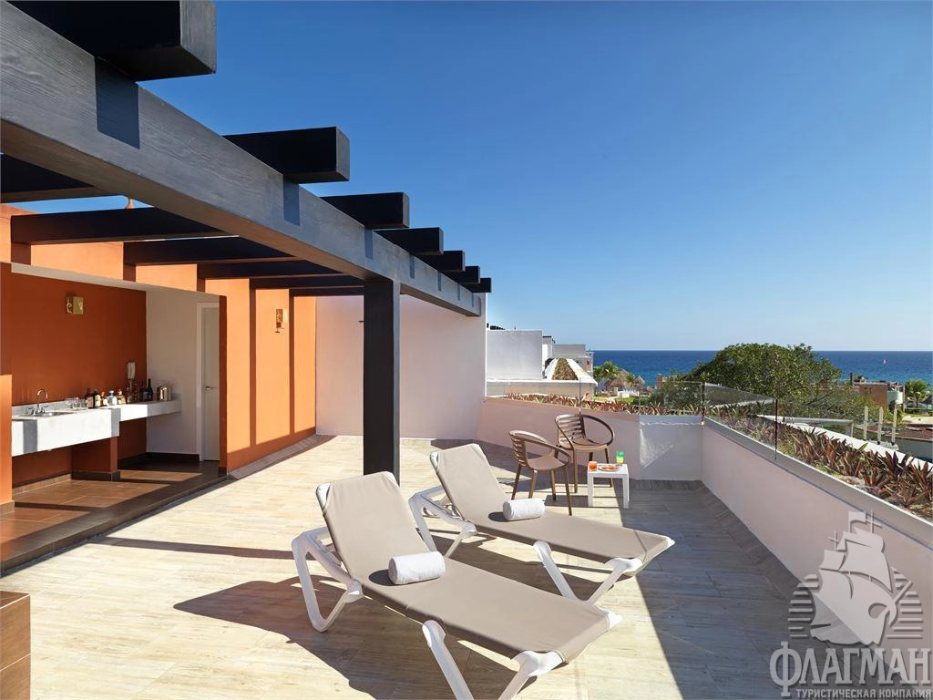 - Rock Suite Platinum – Rooftop Lounge (2 Bdrm) (480 м2, включая террасу, макс. 6 чел., 2 спальни: 1 king + 2 double, отдельная гостиная и столовая, балкон, вид на море, привилегии PAS);