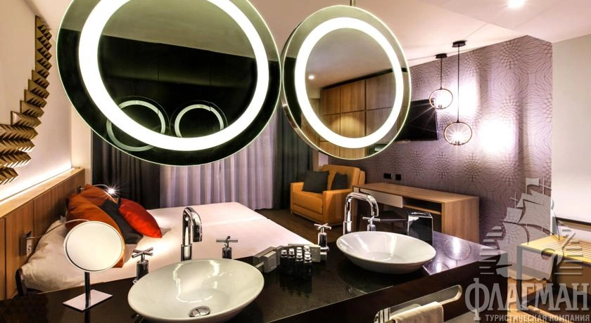 - 109 Rock Royalty Studio Suite (50 м2, расположены на верхних этажах, джакузи, зона гостиной, диван-кровать, телевизор 49”, кофе-машина Nespresso, видео-приставка, отдельный check-in, эксклюзивная зона для завтраков, макс. 3 или 2+2 чел.).