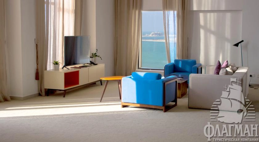 DELUXE 1 BEDROOM SUITE/DELUXE 1 BEDROOM SUITE SEA VIEW: 107 кв.м., одна большая двухспальная кровать, две ванные комнаты, кухонный уголок с микроволновой печью, доховой шкаф, обеденная зона, балкон, гостиная, софа, мини-бар, набор для приготовления чая/кофе, электрический чайник, 42-дюймовый телевизор с кабельными каналами, Wi-Fi бесплатно для двух устройств в номере, телефон, утюг и гладильная доска, халаты, тапочки, фен, кондиционер. Максимальное размещение 2 взрослых + 2 детей до 12 лет.
