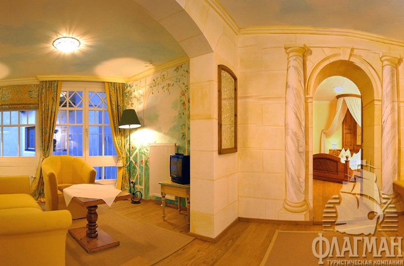 - Weddingsuite (50–60 м2, на 2 чел., раздельные гостиная и спальня, с двухместным джакузи)