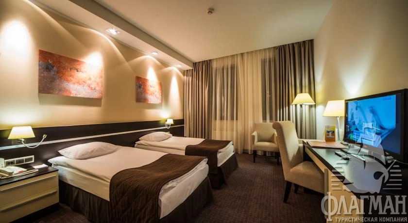 стандарт TWIN (22-25 кв. м) - две односпальные кровати, система управления климатом, бесплатный Wi-Fi, спутниковое TV, телефон, мини-бар, сейф, душевая кабина, фен.